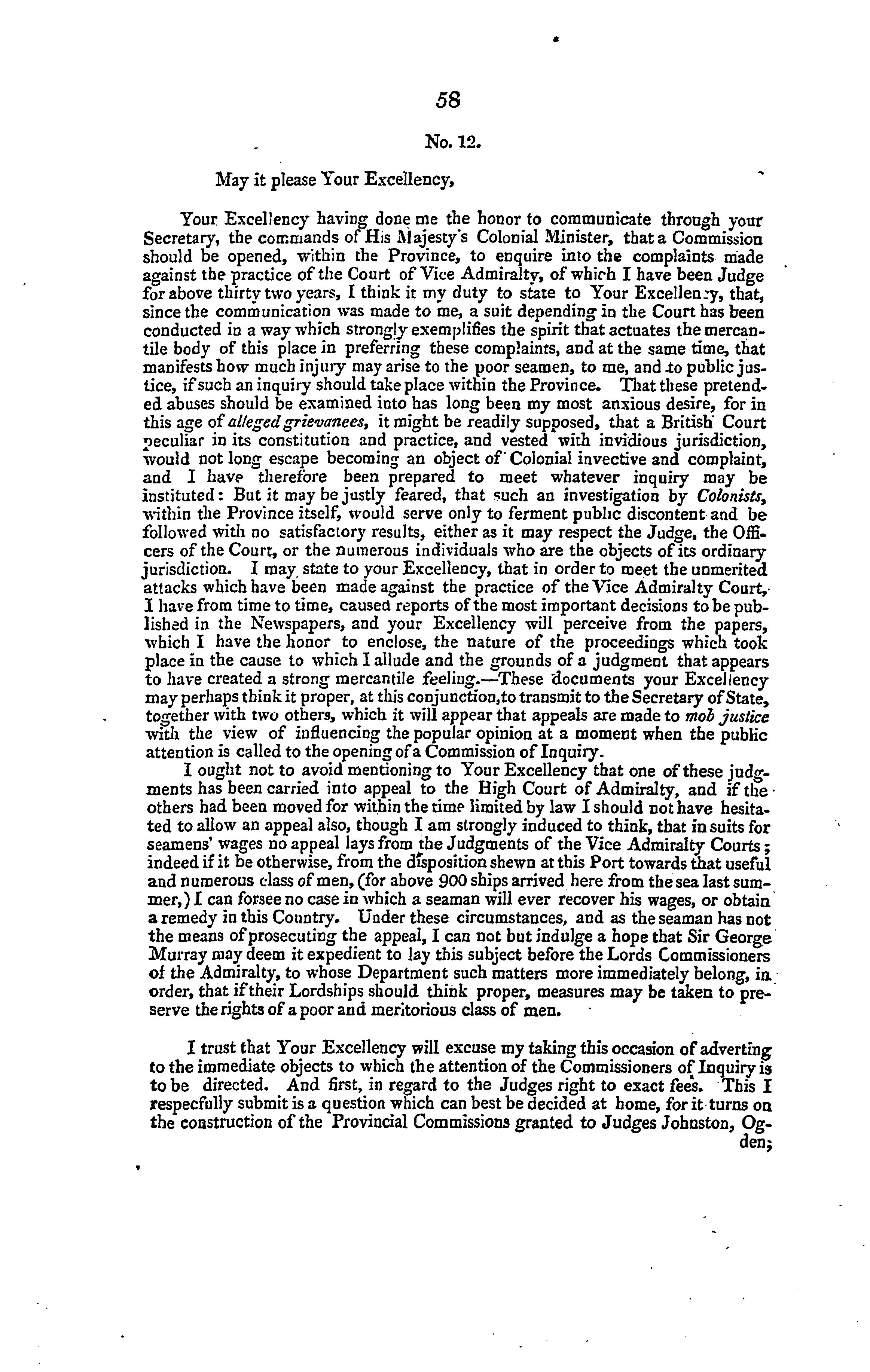 Message : Aylmer, Governor in Chief, In compliance with the request contained in the address of the House of Assembly of the 25th November, the Governor in Chief transmits copies of the correspondence required respecting the Honble. James Kerr, Esquire, judge of the Court of Vice- Admiralty ...