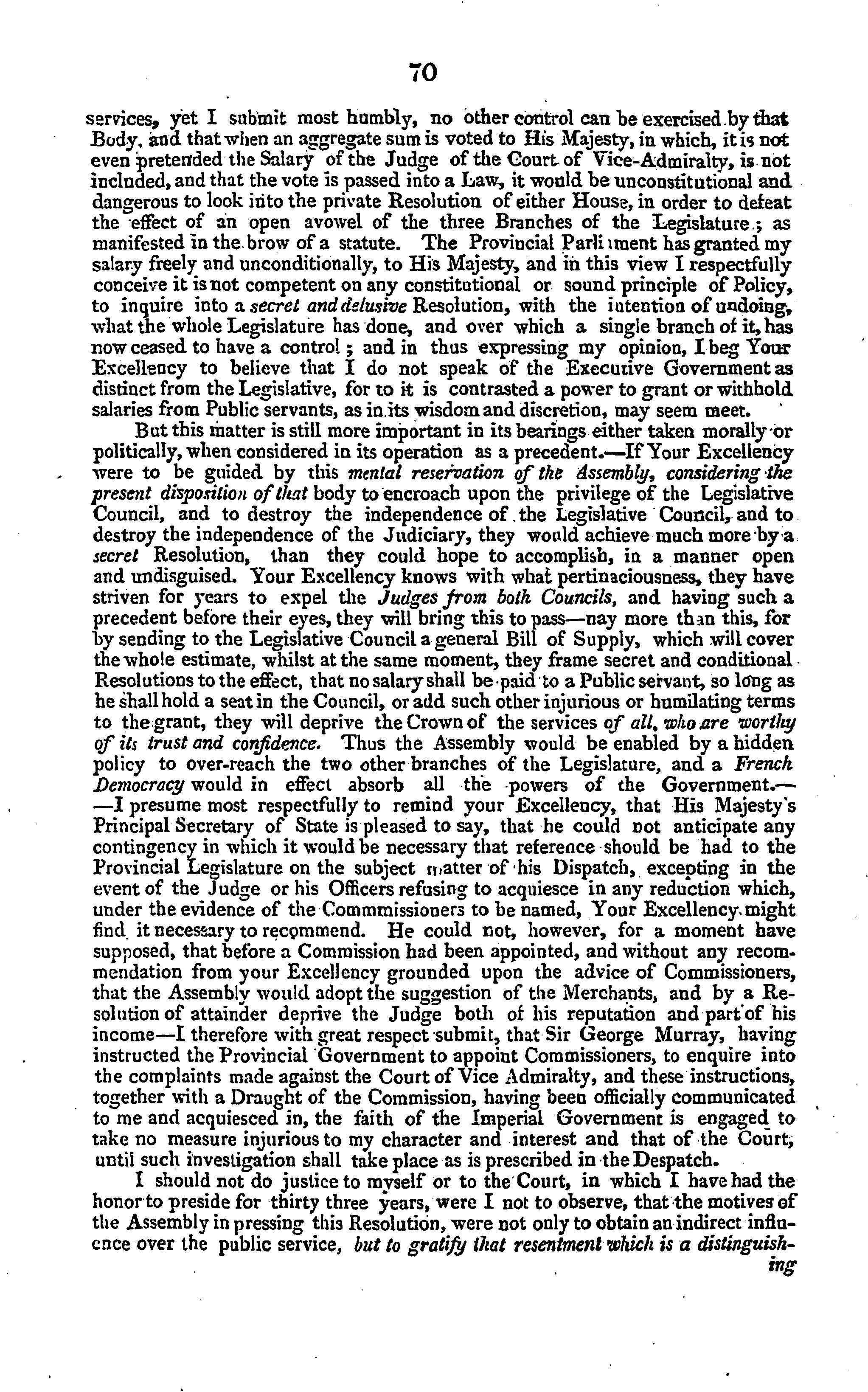 Message : Aylmer, Governor in Chief, In compliance with the request contained in the address of the House of Assembly of the 25th November, the Governor in Chief transmits copies of the correspondence required respecting the Honble. James Kerr, Esquire, judge of the Court of Vice- Admiralty ...