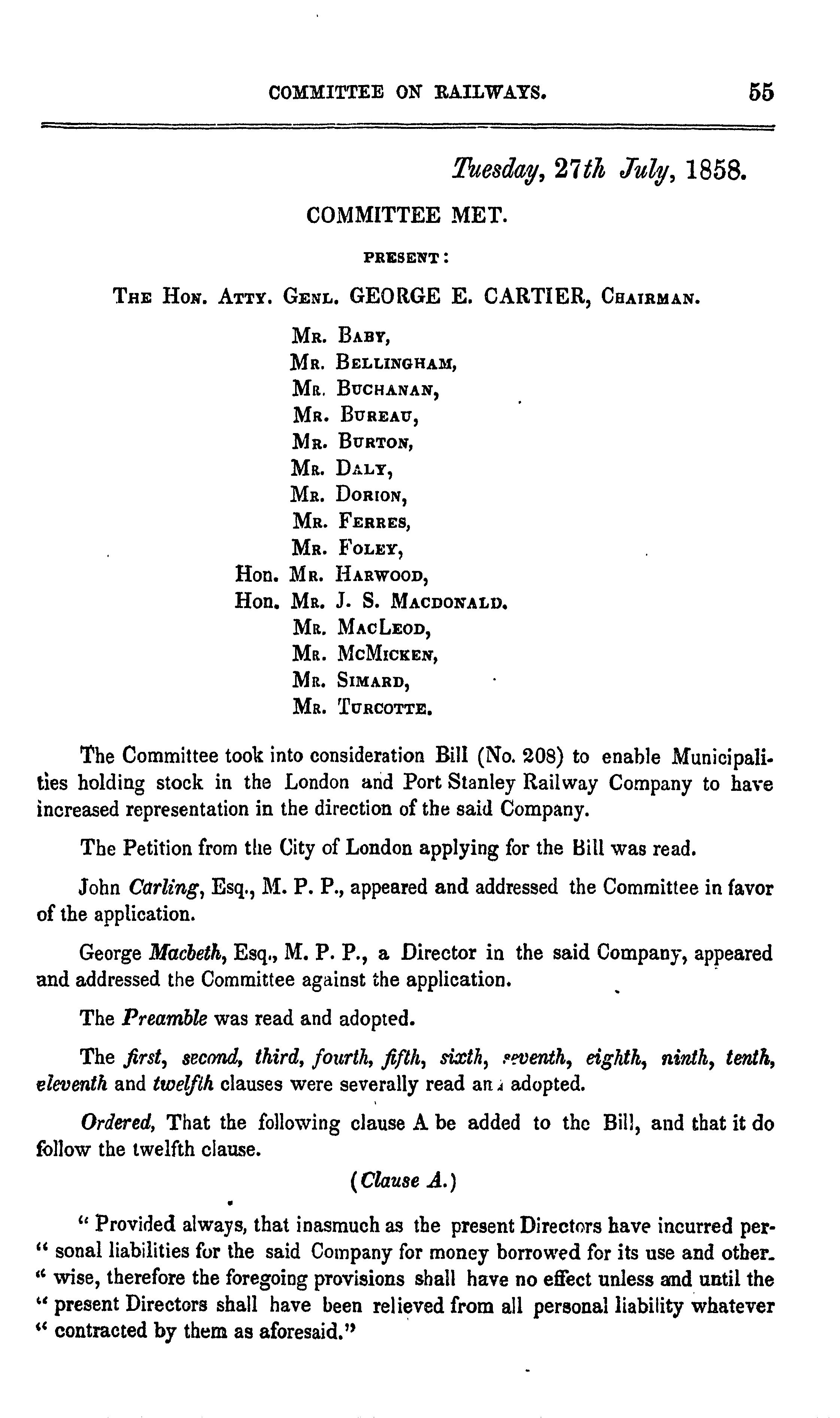 - Proceedings of the Select Standing Committee on Railroads, Canals, and Telegraph Lines, together with minutes of evidence : 1859