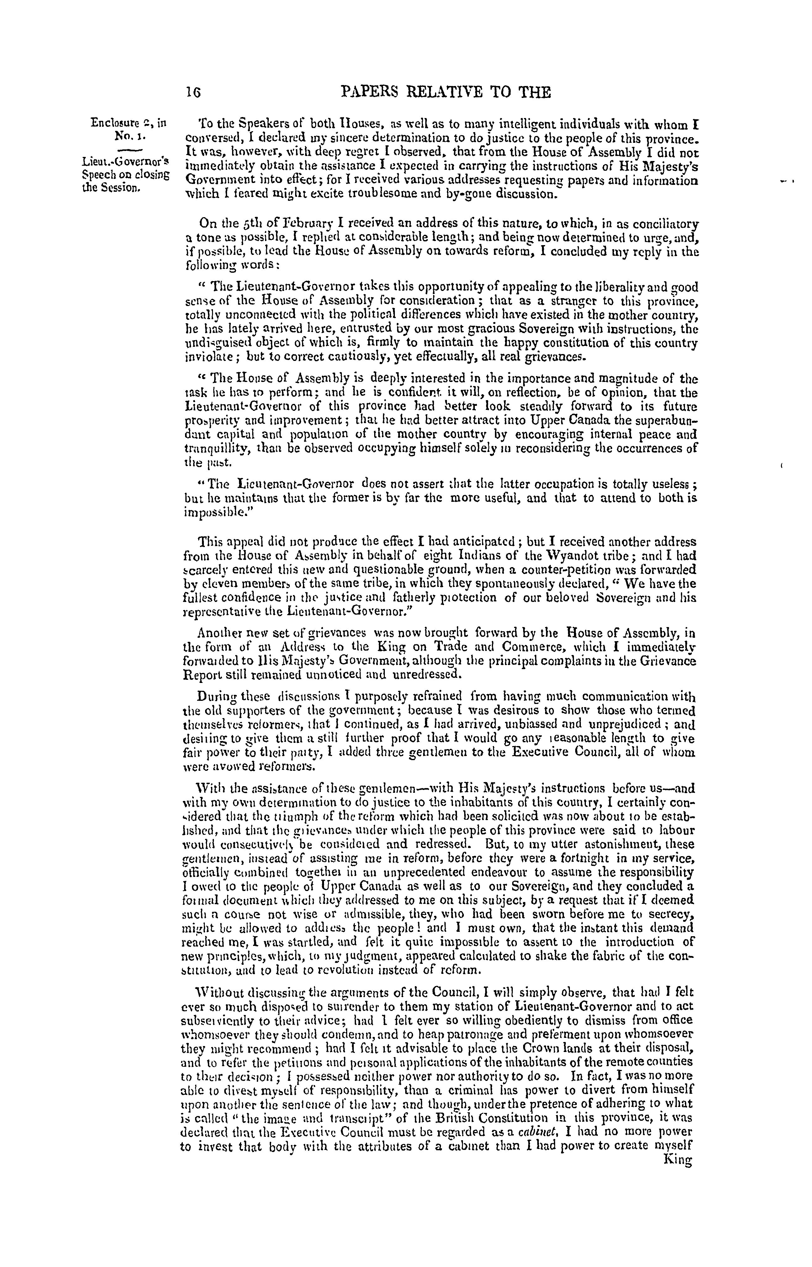 Upper Canada : return to an address of the Honourable the House of Commons, dated 17 January 1838 for, copy of the despatches from Sir F.B. Head to Lord Glenelg, dated 21 April 1836, and 16 July 1836.