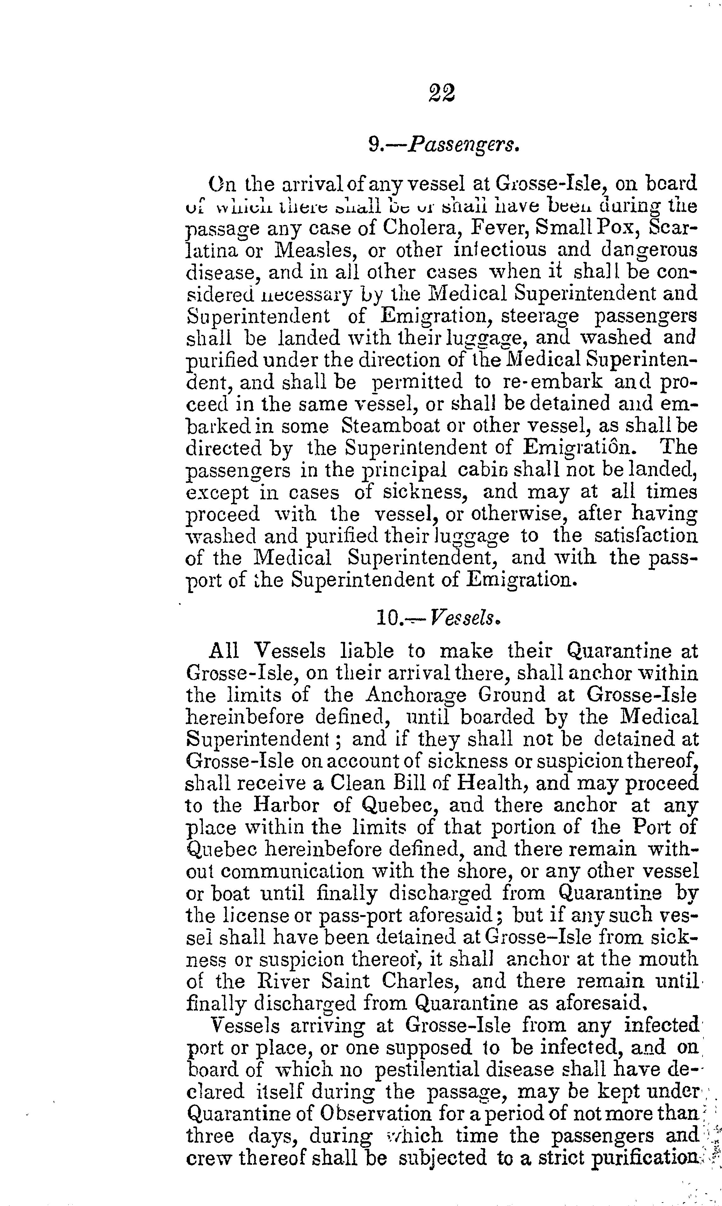 Règlements concernant la quarantaine à être faite par des vesseaux arrivant au port de Québec et l'acte relatif a icelle