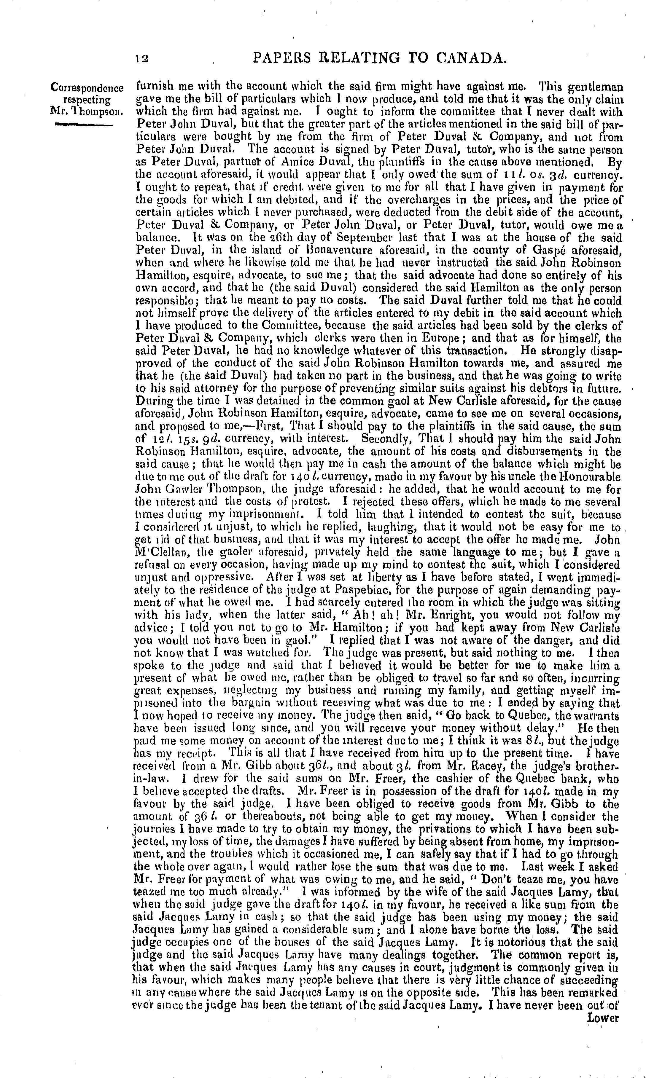 Canada : return to an address of the Honourable the House of Commons, dated 16 March 1837 for: Copy of the agreement concluded between His Majesty's government and the British American Land Company, in the year 1833 ...; Copies of a report of the Select Committee of the House of Assembly of Lower Canada, respecting Mr. Thompson, judge of the Inferior District of Gaspé ...; Copies of a report of the Select Committee of the House of Assembly of Lower Canada, respecting Mr. Whitcher, sherriff of St. Francis ...; Copies of two reports of a Select Committee of the House of Assembly of Lower Canada, respecting Mr. Felton ...