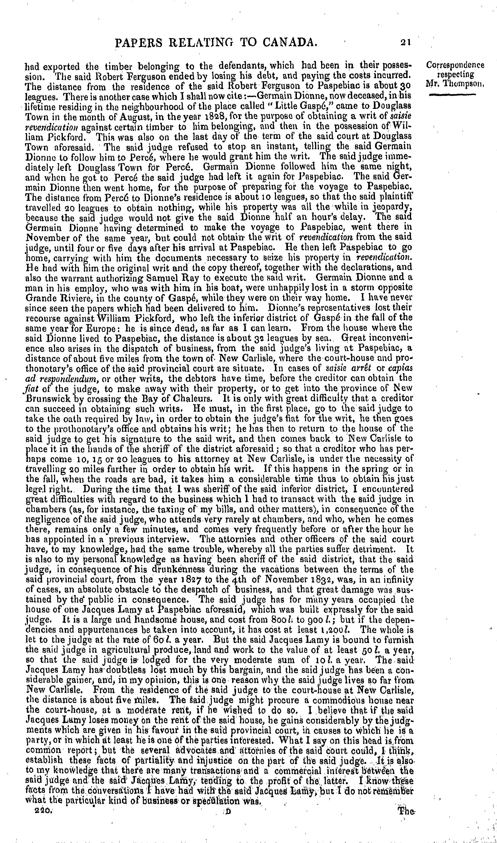 Canada : return to an address of the Honourable the House of Commons, dated 16 March 1837 for: Copy of the agreement concluded between His Majesty's government and the British American Land Company, in the year 1833 ...; Copies of a report of the Select Committee of the House of Assembly of Lower Canada, respecting Mr. Thompson, judge of the Inferior District of Gaspé ...; Copies of a report of the Select Committee of the House of Assembly of Lower Canada, respecting Mr. Whitcher, sherriff of St. Francis ...; Copies of two reports of a Select Committee of the House of Assembly of Lower Canada, respecting Mr. Felton ...