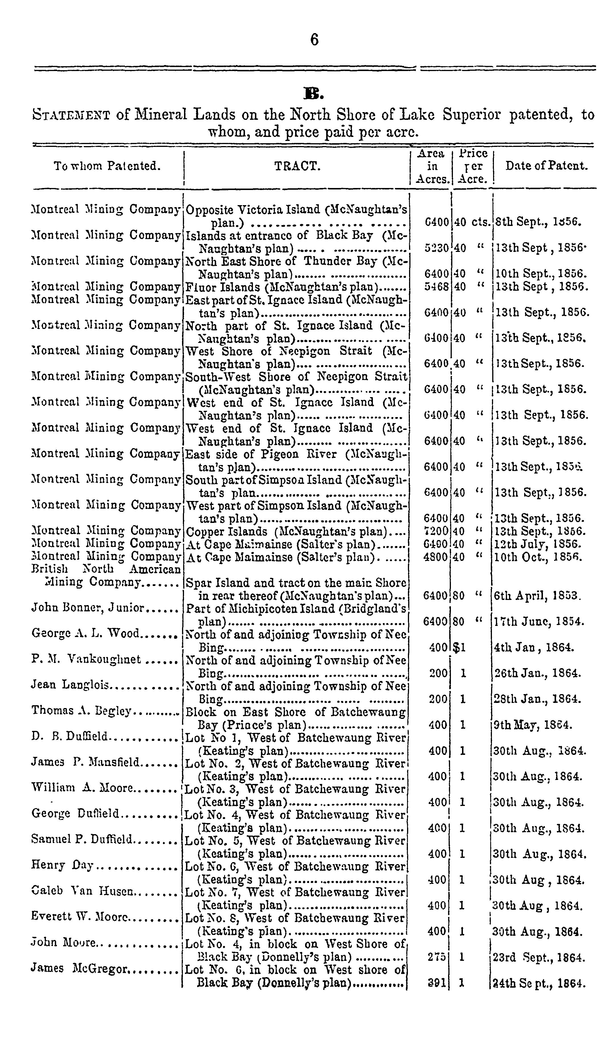 Canada. Legislature. Legislative Assembly. Select Committee on the Copper Mines on the North Side of Lake Superior.