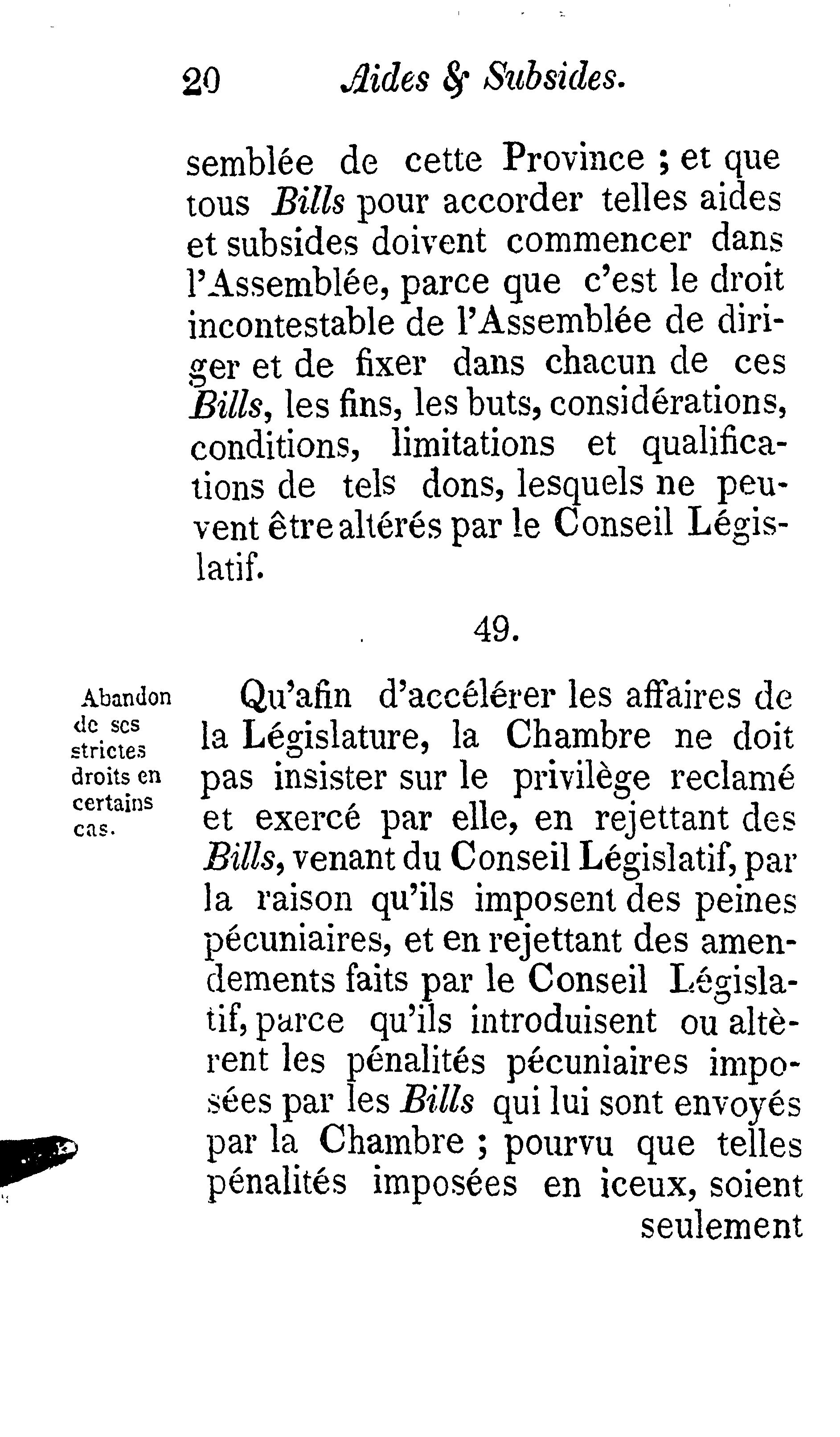 Règles et règlements permanents de l'Assemblée législative du Canada :