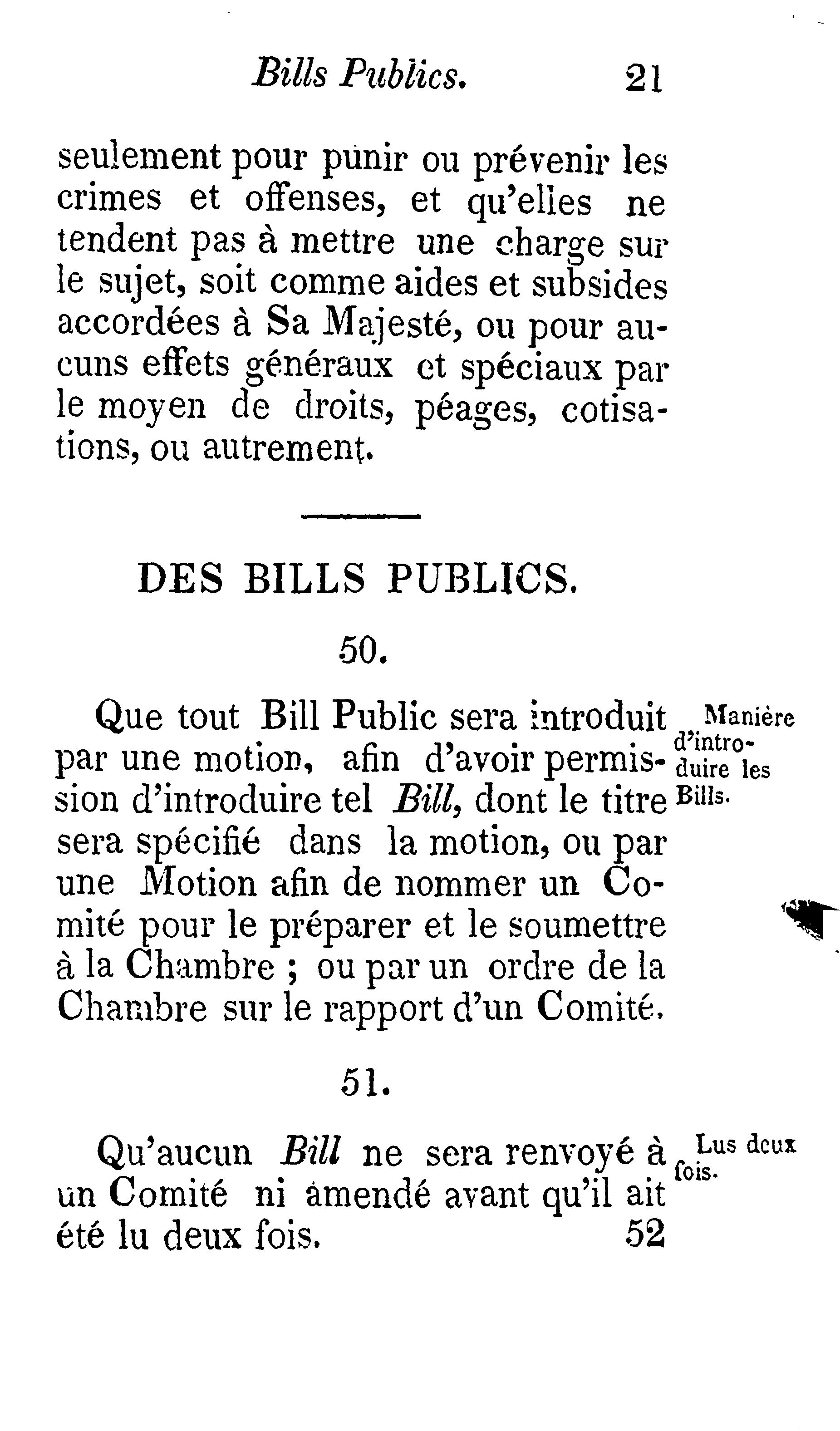 Règles et règlements permanents de l'Assemblée législative du Canada :