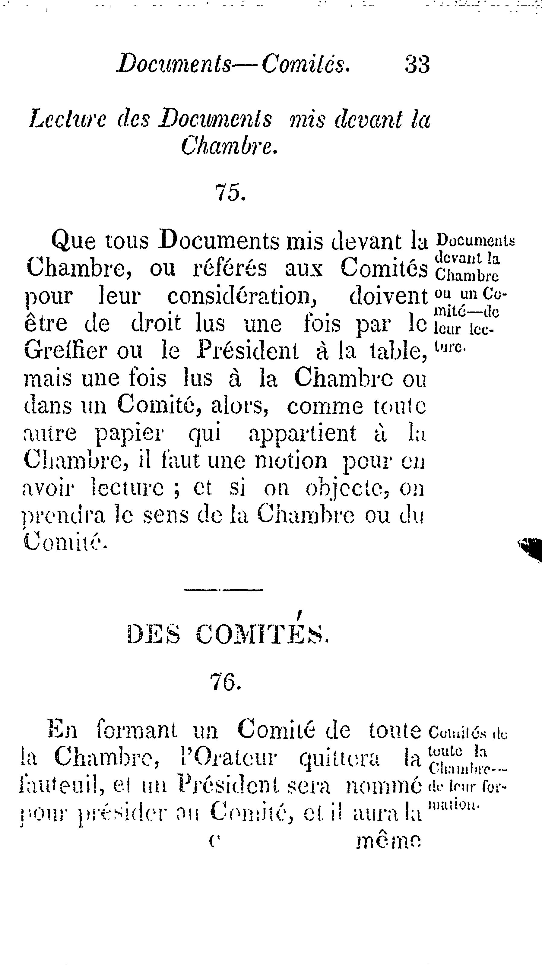 Règles et règlements permanents de l'Assemblée législative du Canada :
