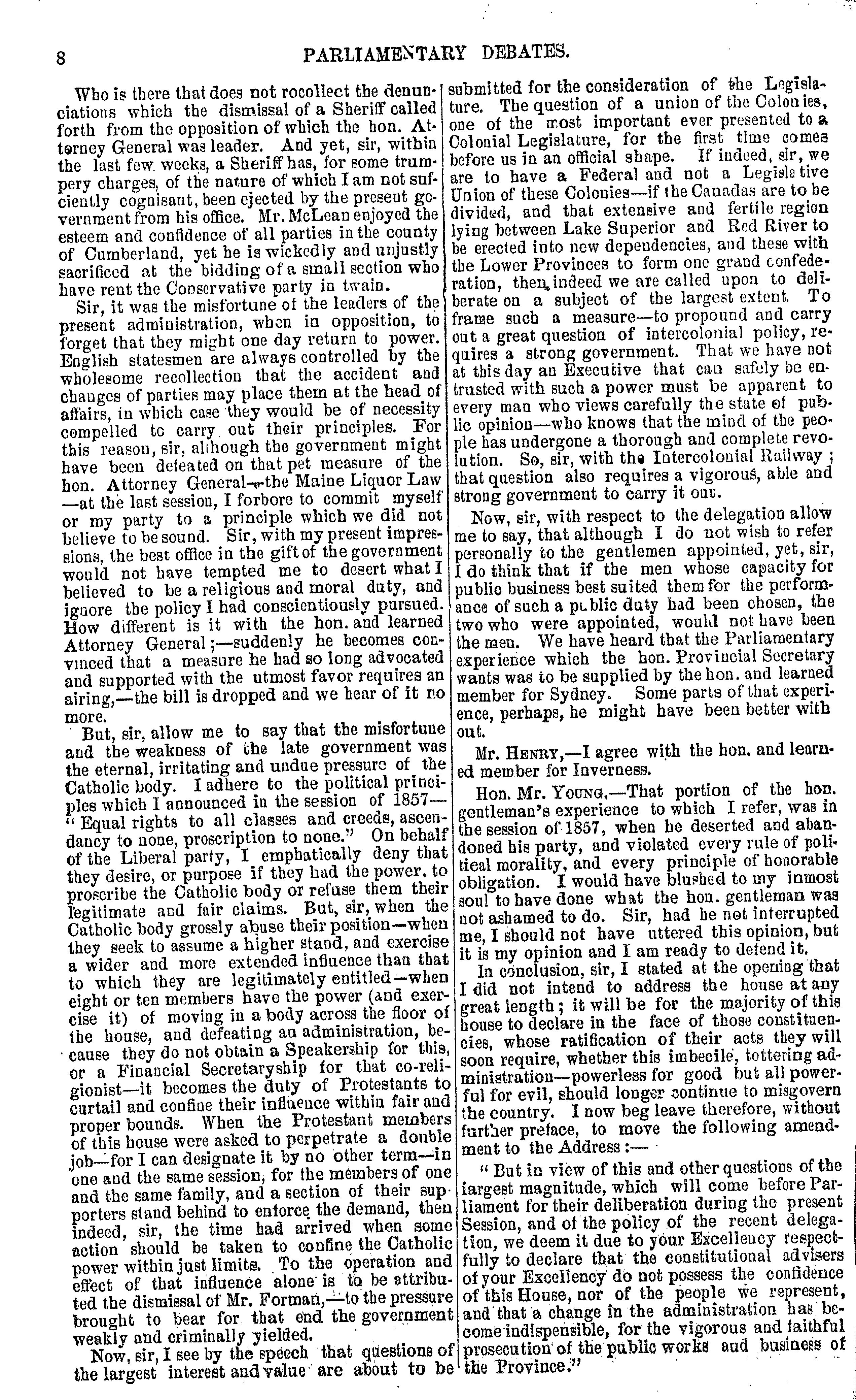 Parliamentary debates ... of the province of Nova Scotia ... : The debates and proceedings during the fourth session of the twenty-first Parliament of the province of Nova-Scotia, 1859 : 1859
