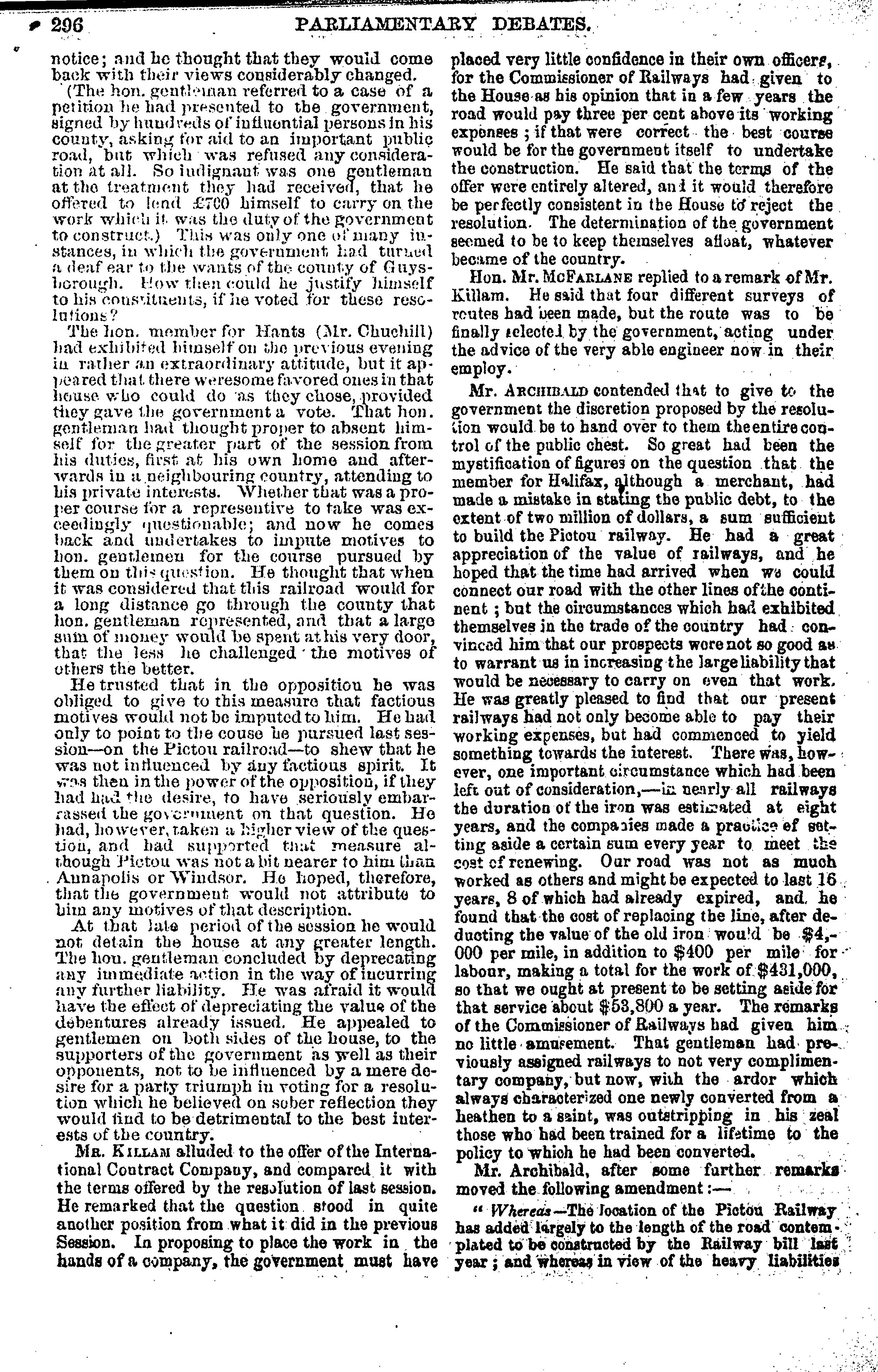 Debates and proceedings of the House of Assembly during the second session of the twenty-third Parliament of the province of Nova Scotia, 1865 : 1865
