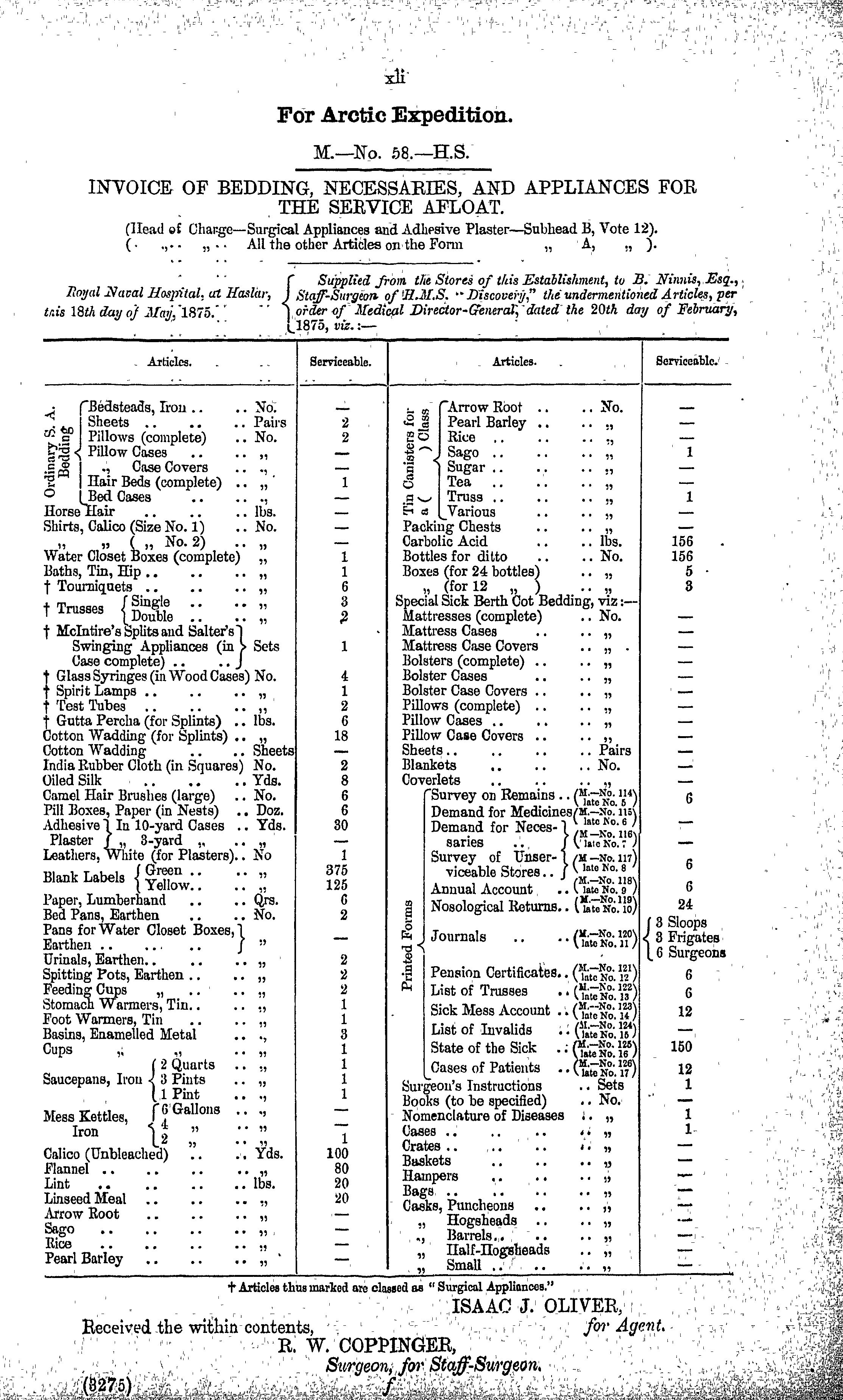 Report of the Committee appointed by the Lords Commissioners of the Admiralty, to enquire into the causes of the outbreak of scurvy in the recent Arctic expedition, the adequacy of the provision made by the Admiralty in the way of food, medicine and medical comforts, and the propriety of the orders given by the commander of the expedition for provisioning the sledge parties.