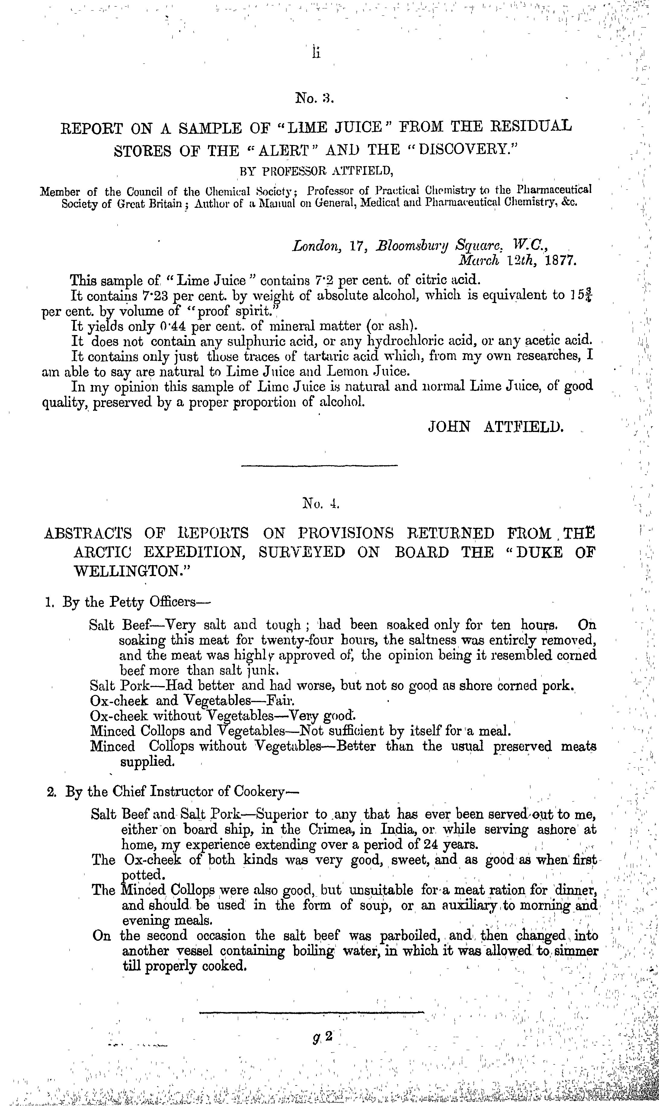 Report of the Committee appointed by the Lords Commissioners of the Admiralty, to enquire into the causes of the outbreak of scurvy in the recent Arctic expedition, the adequacy of the provision made by the Admiralty in the way of food, medicine and medical comforts, and the propriety of the orders given by the commander of the expedition for provisioning the sledge parties.