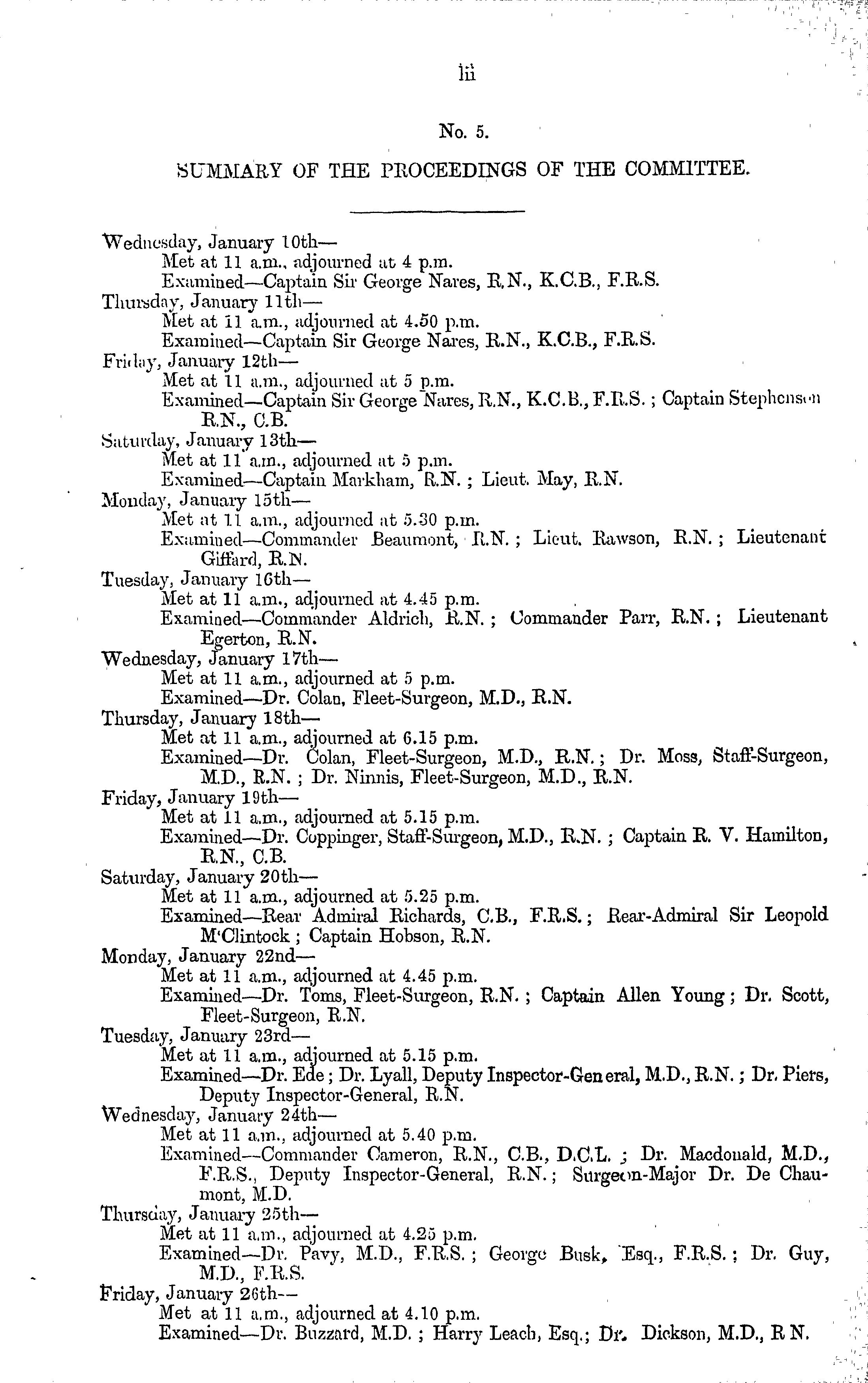 Minutes of evidence taken before a Committee appointed by the Admiralty to enquire into the outbreak of scurvy in the recent Arctic expedition ...