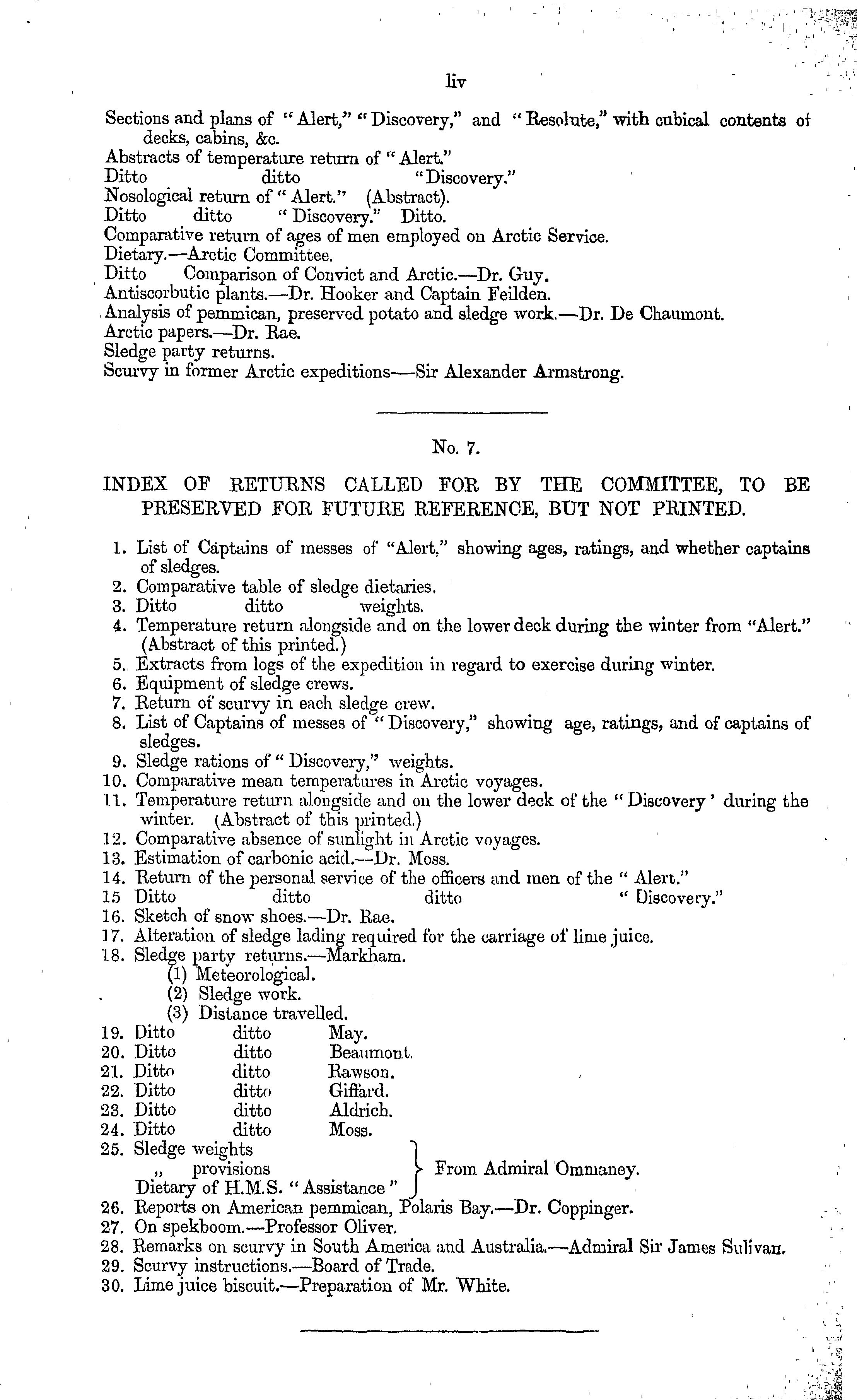 Report of the Committee appointed by the Lords Commissioners of the Admiralty, to enquire into the causes of the outbreak of scurvy in the recent Arctic expedition, the adequacy of the provision made by the Admiralty in the way of food, medicine and medical comforts, and the propriety of the orders given by the commander of the expedition for provisioning the sledge parties.