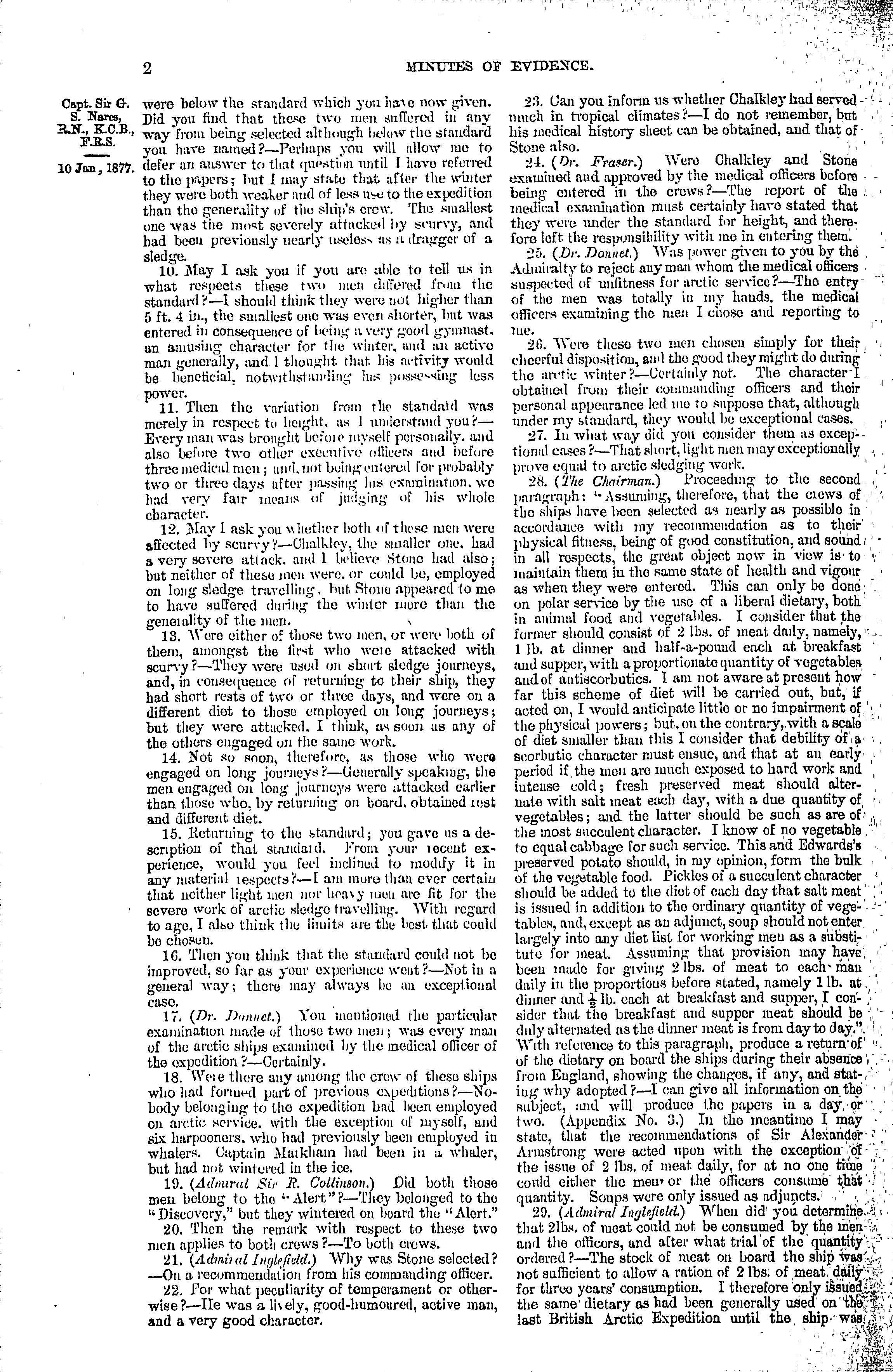 Minutes of evidence taken before a Committee appointed by the Admiralty to enquire into the outbreak of scurvy in the recent Arctic expedition ...