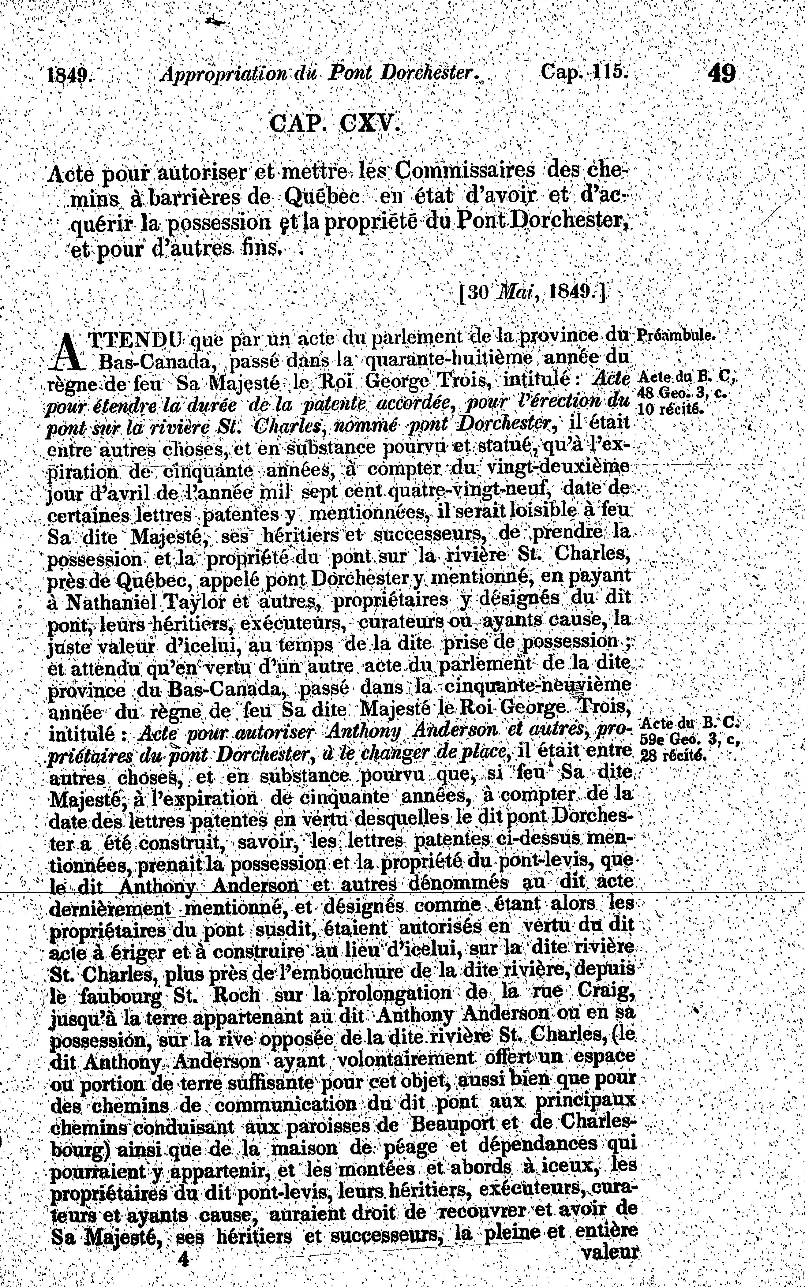 Actes relatifs aux chemins . barrières et ponts dans et près de Québec.