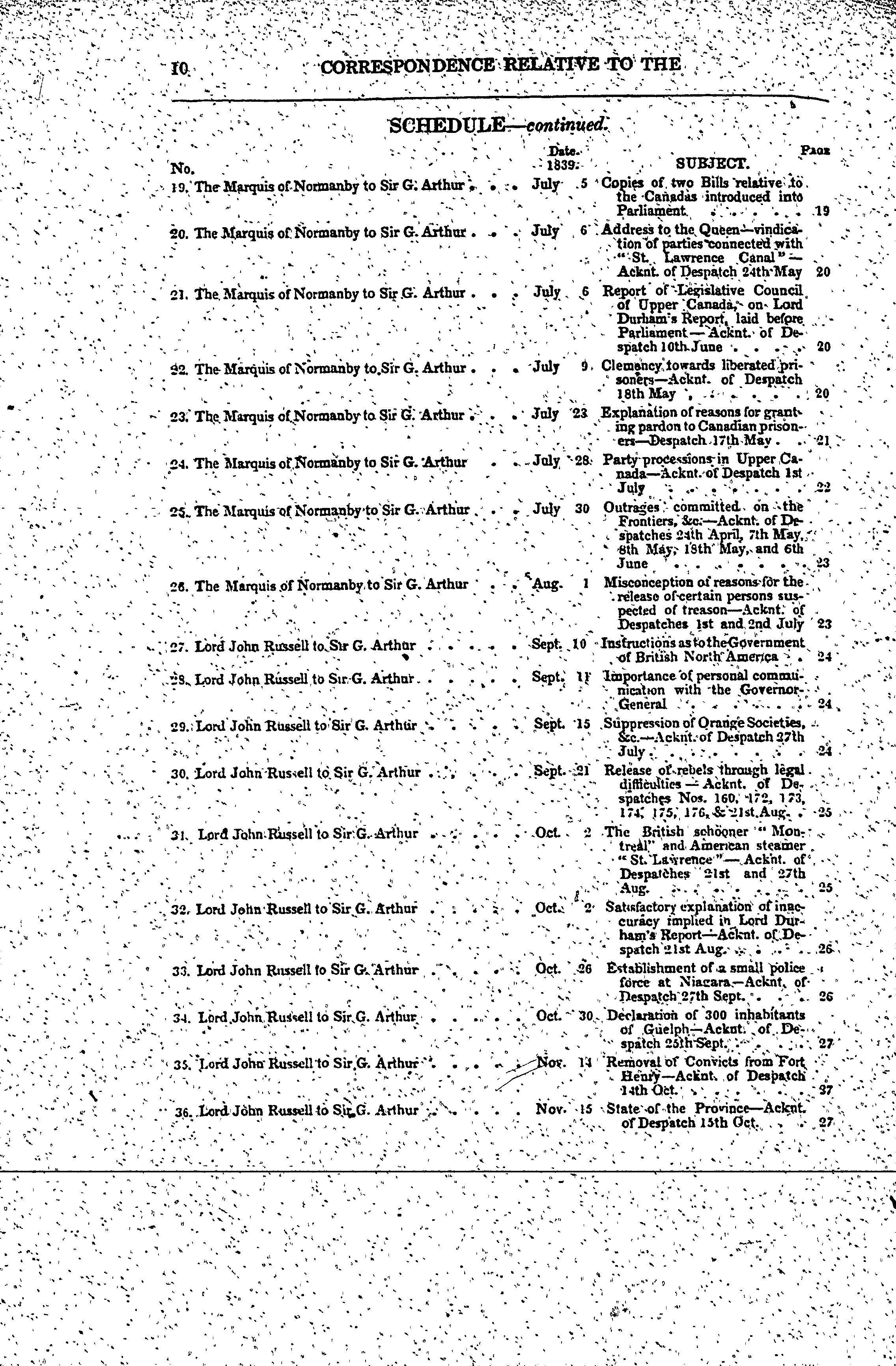 Correspondence relative to the affairs of Canada