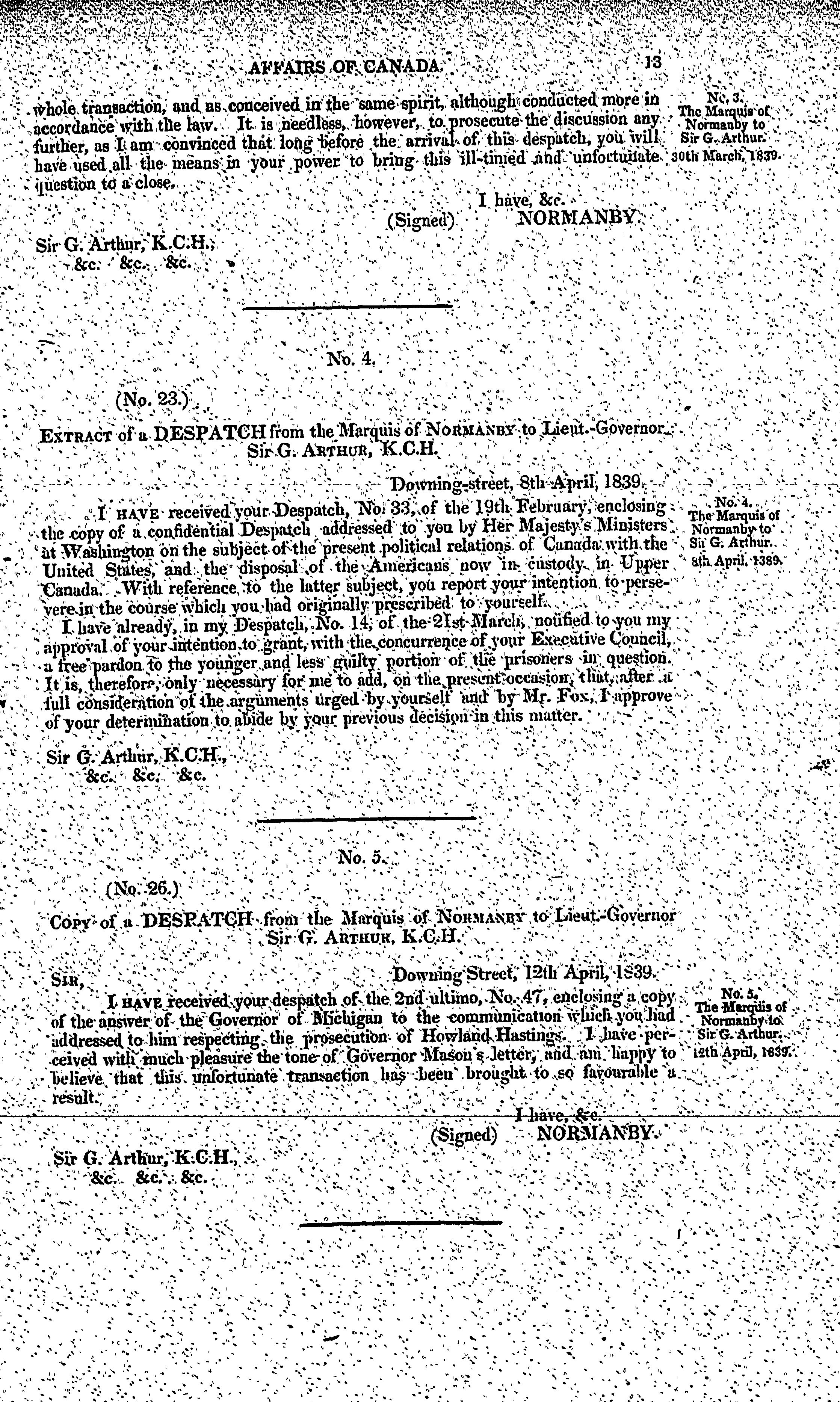 Correspondence relative to the affairs of Canada