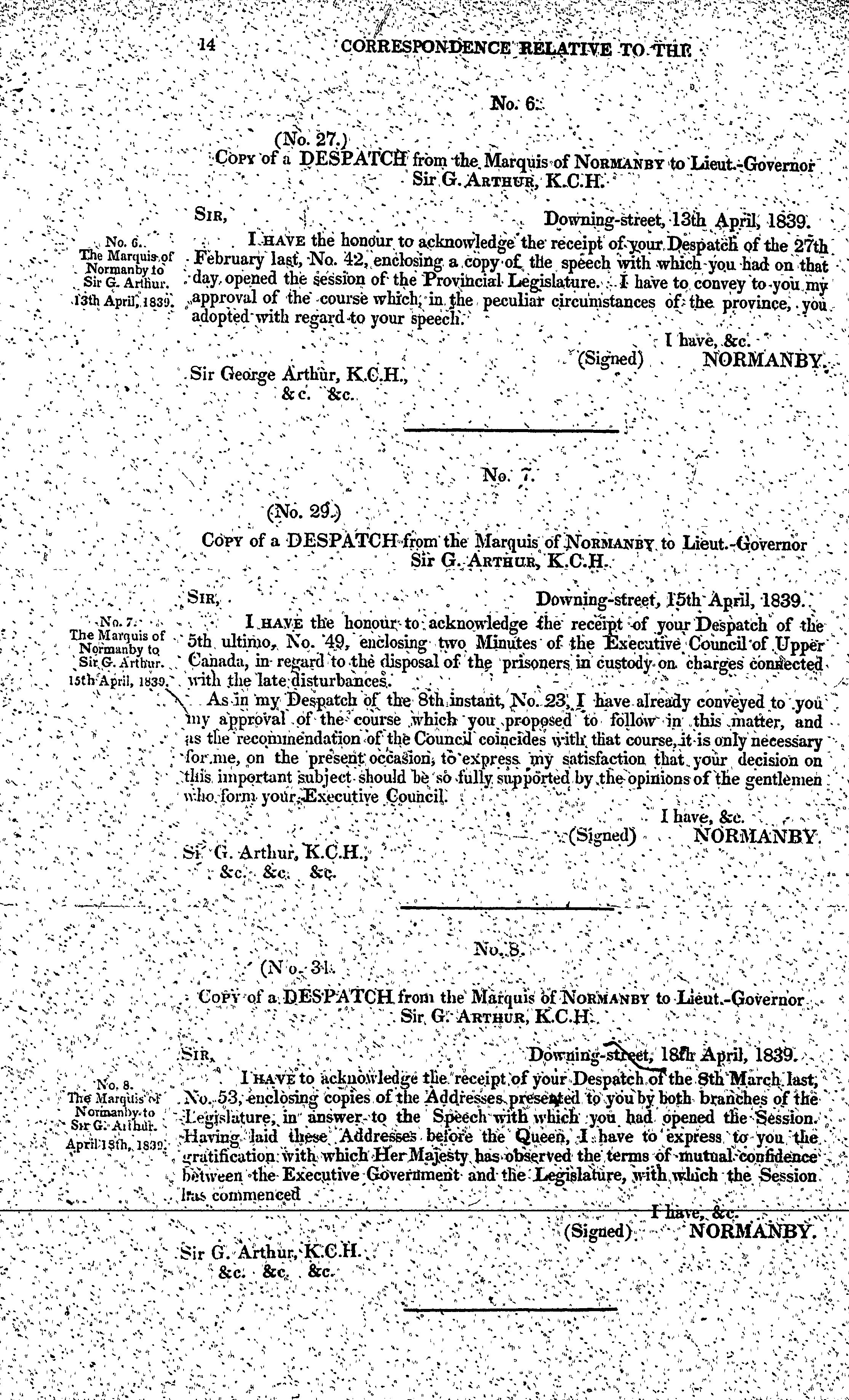 Correspondence relative to the affairs of Canada