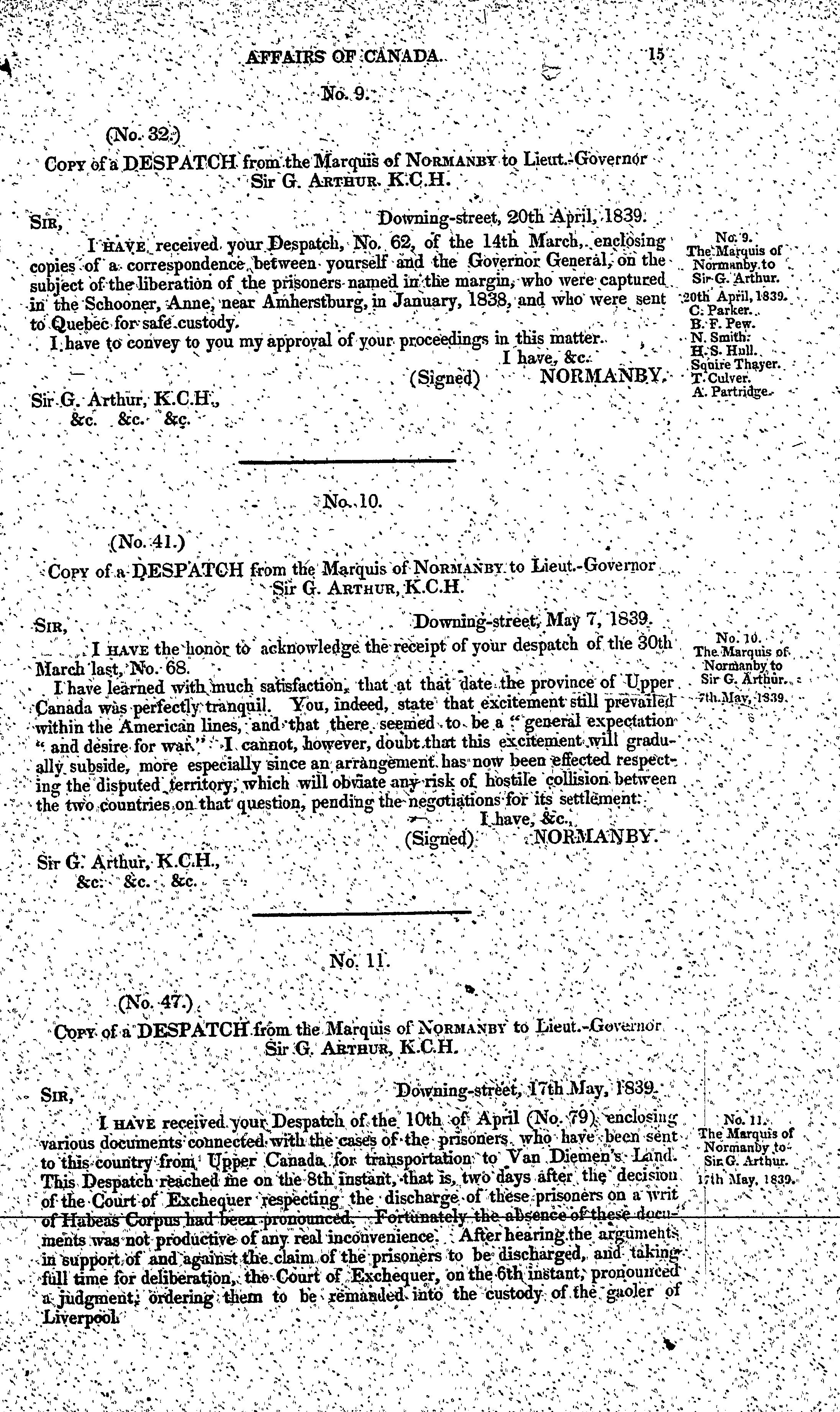 Correspondence relative to the affairs of Canada