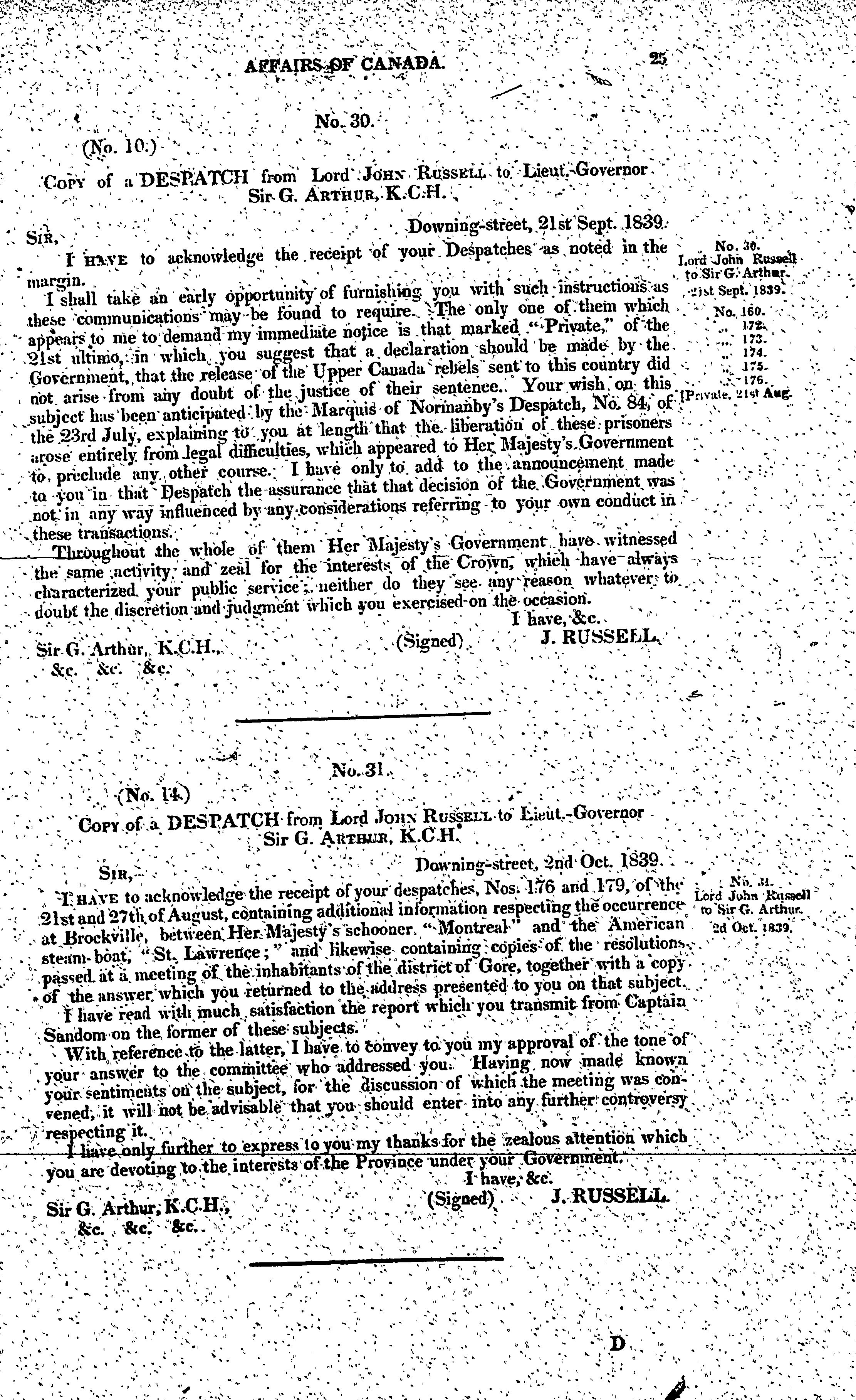 Correspondence relative to the affairs of Canada