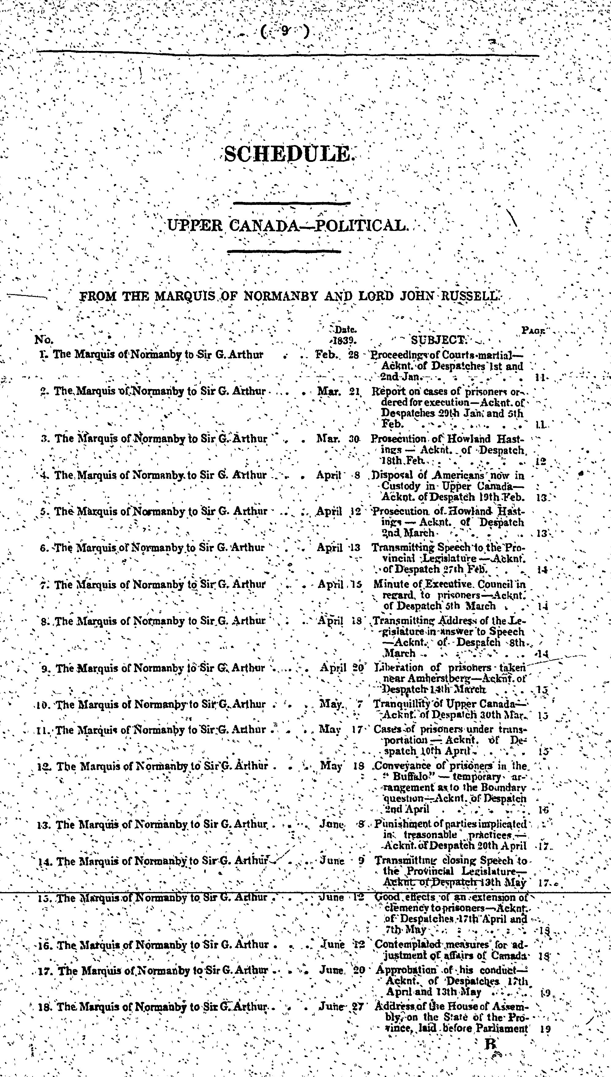 Correspondence relative to the affairs of Canada