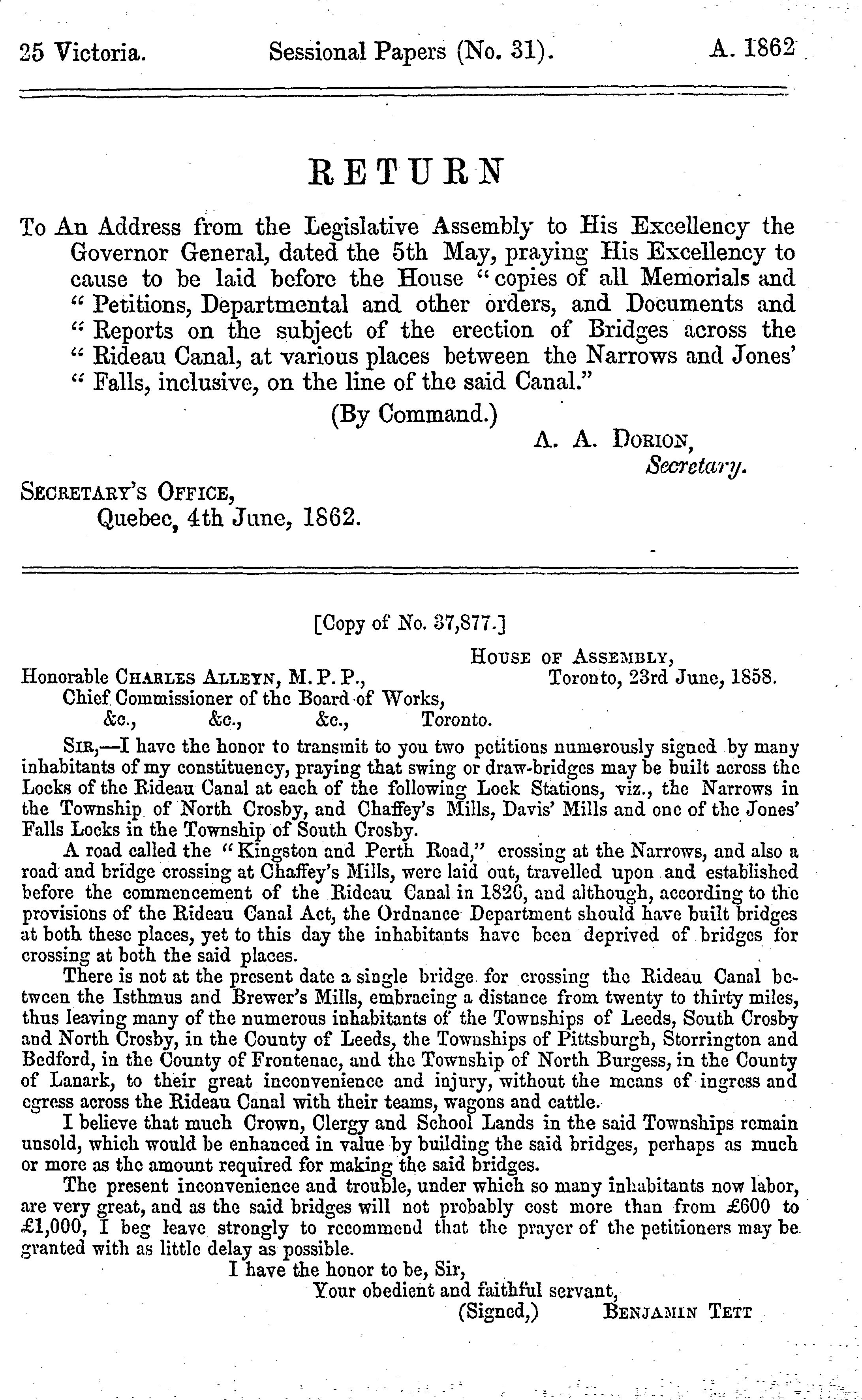 Sessional papers, first session of the seventh Parliament of the Province of Canada, session 1862 : Vol. 4 (1862)