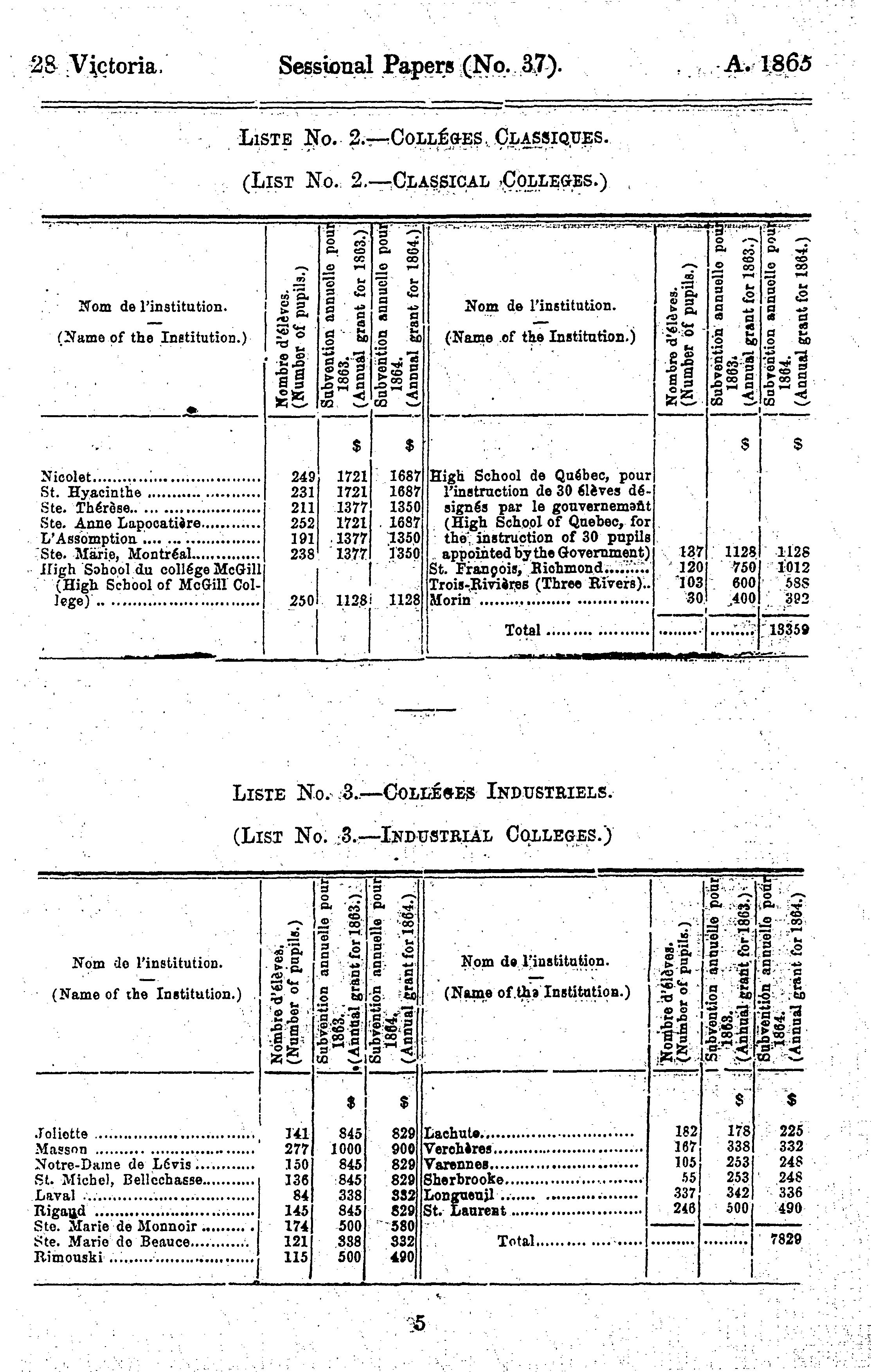 Sessional papers, third session of the eighth Parliament of the Province of Canada, session 1865 : Vol. 3 (1865)