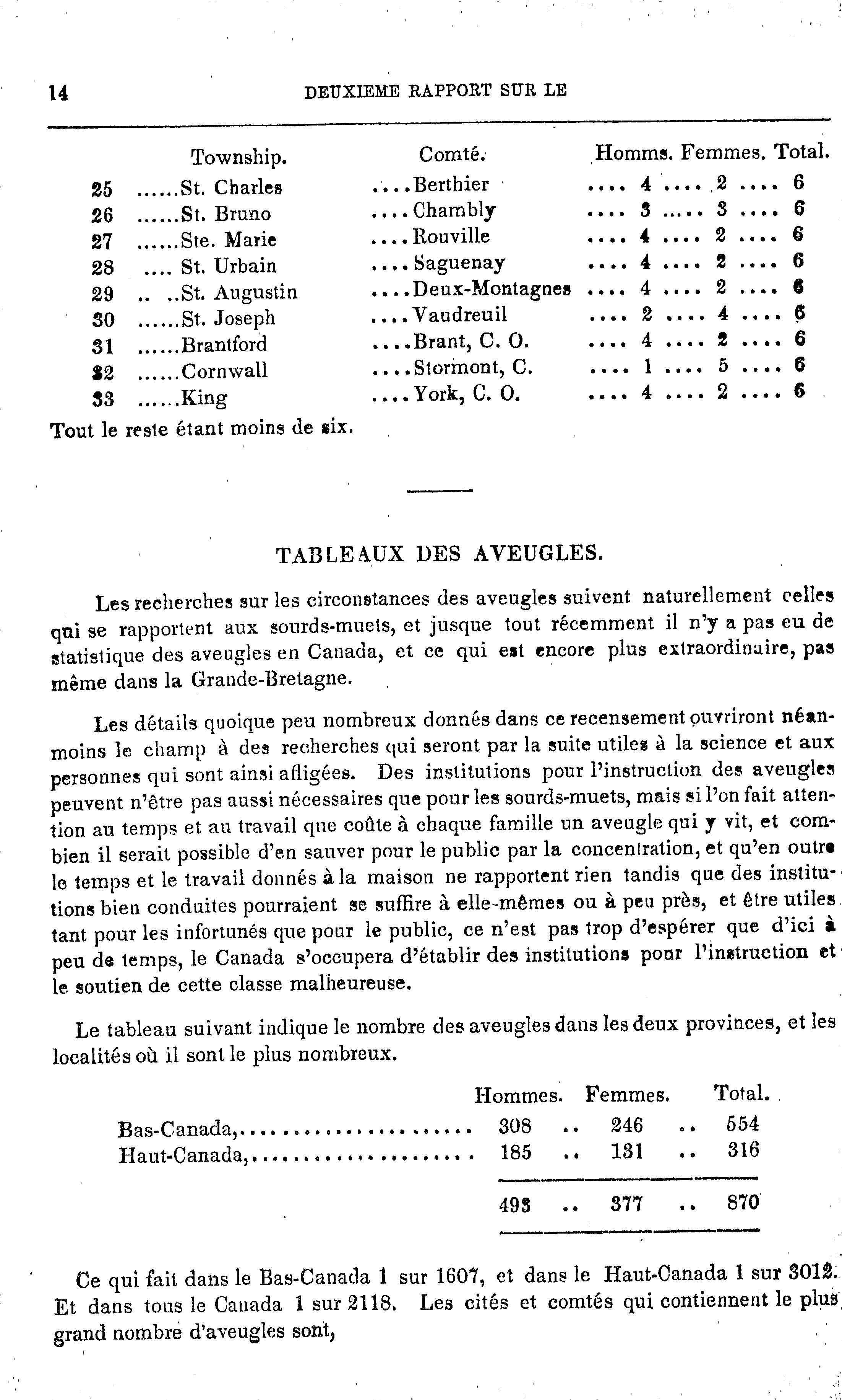 Deuxième rapport du Secrétaire du Bureau d'enregistrement et de statistique, sur le recensement des Canadas, pour 1851-52