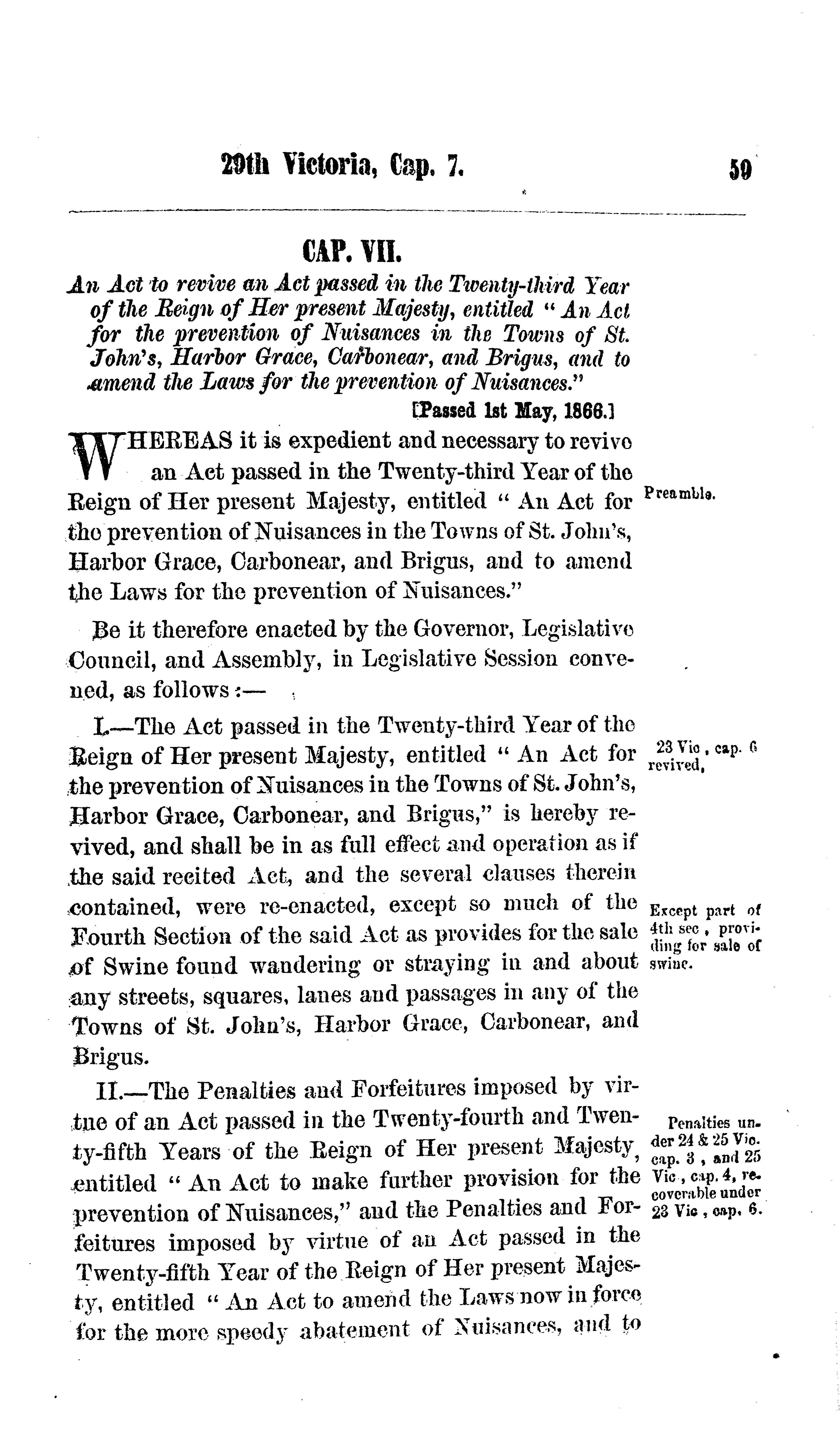 Acts of the General Assembly of Newfoundland, passed in the 29th year of the reign of Her Majesty Queen Victoria : 1866