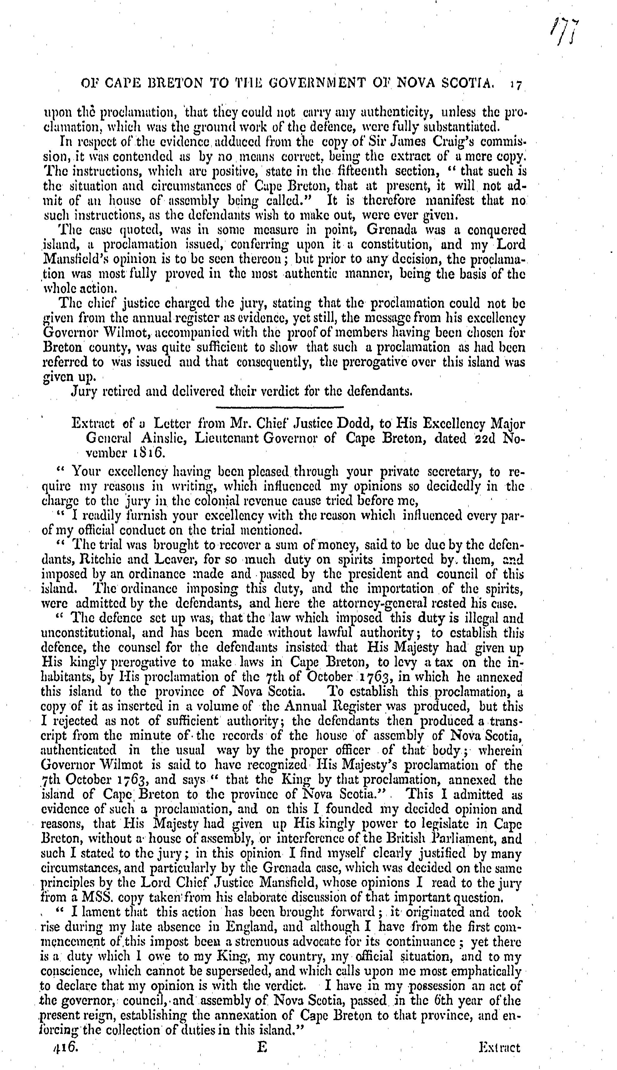 Papers relative to the re-annexation of the island of Cape Breton to the government of Nova Scotia. - Published