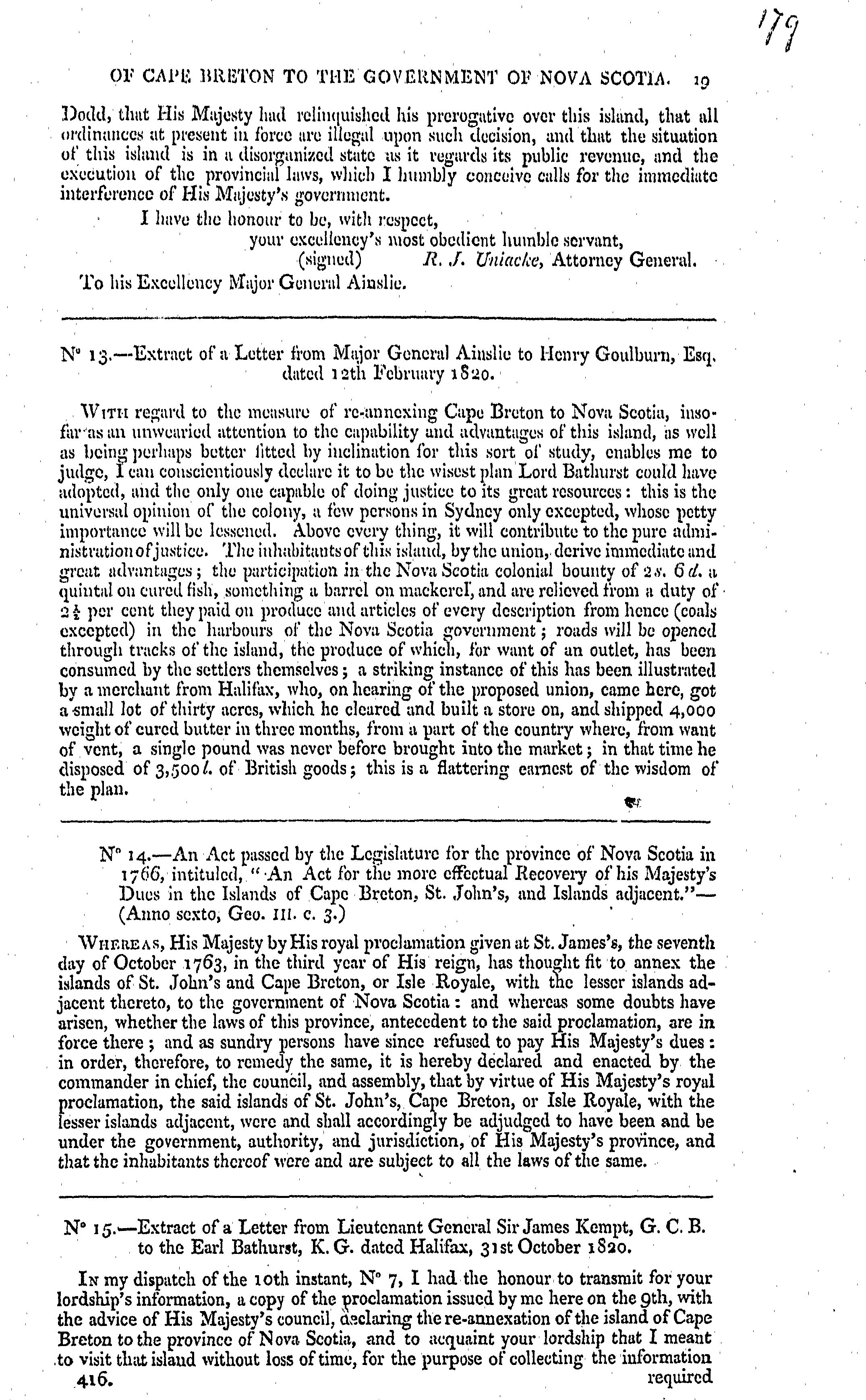 Papers relative to the re-annexation of the island of Cape Breton to the government of Nova Scotia.