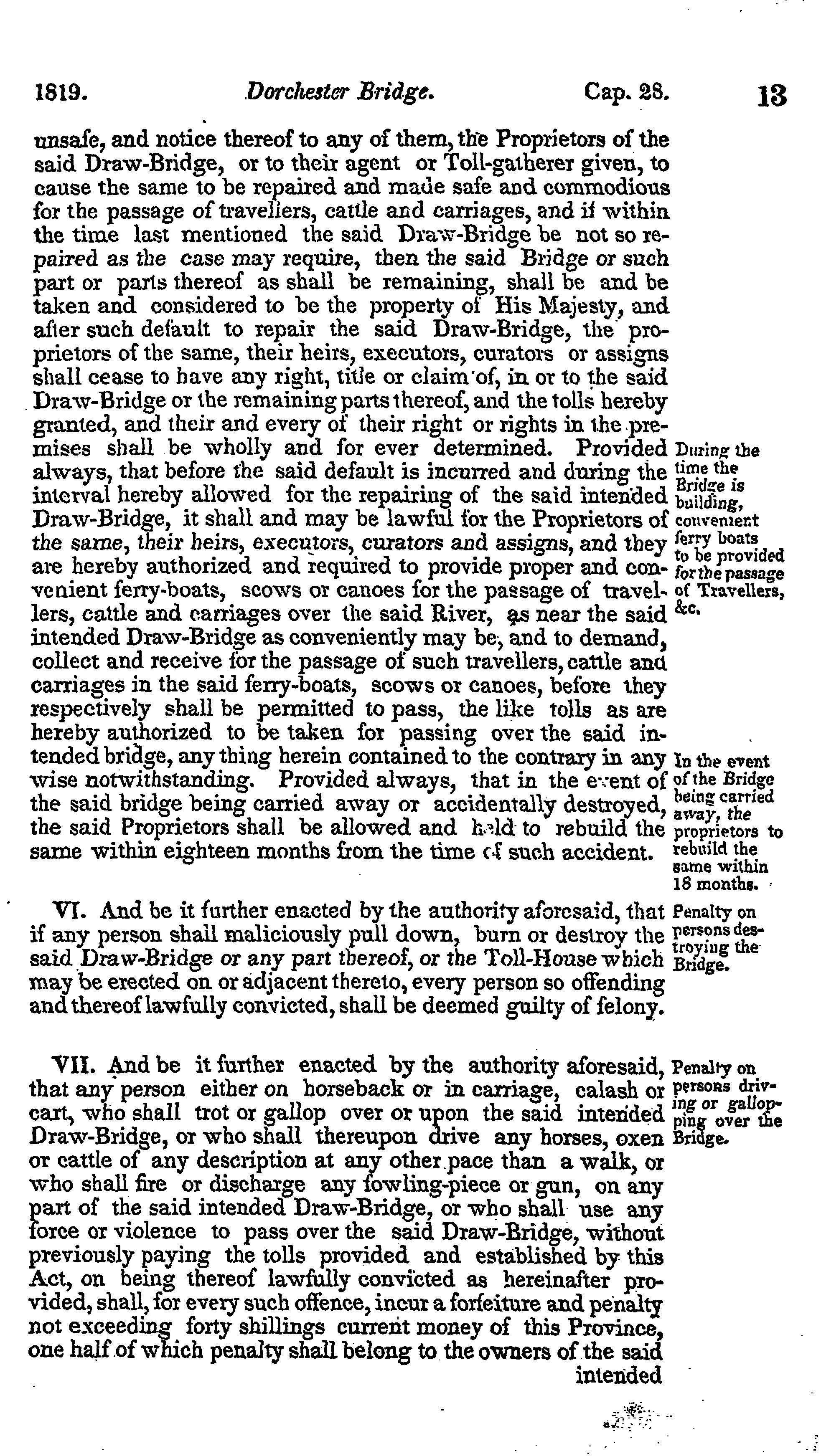 Acts relating to the turnpike roads and bridges in and near Quebec.