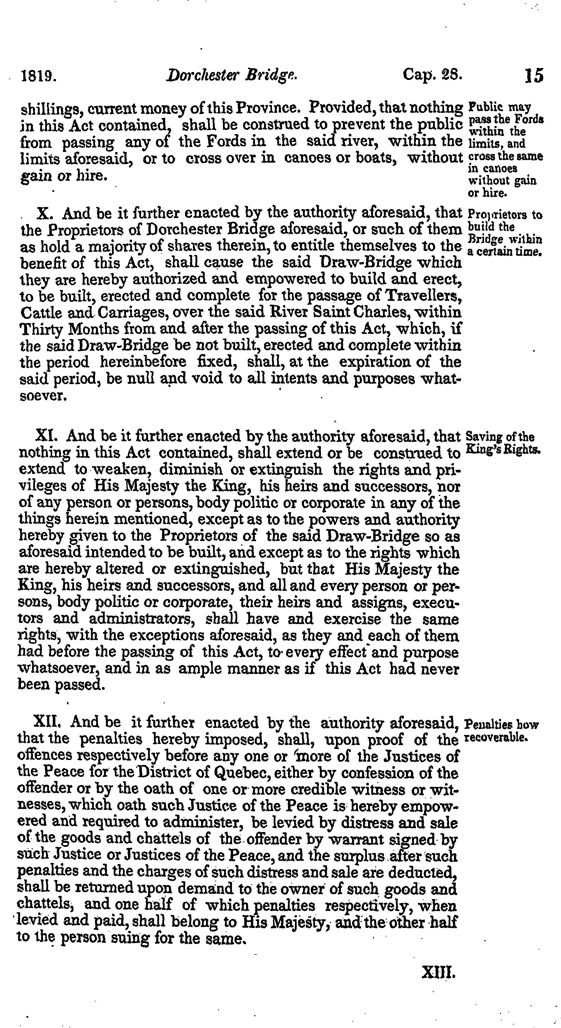 Acts relating to the turnpike roads and bridges in and near Quebec.