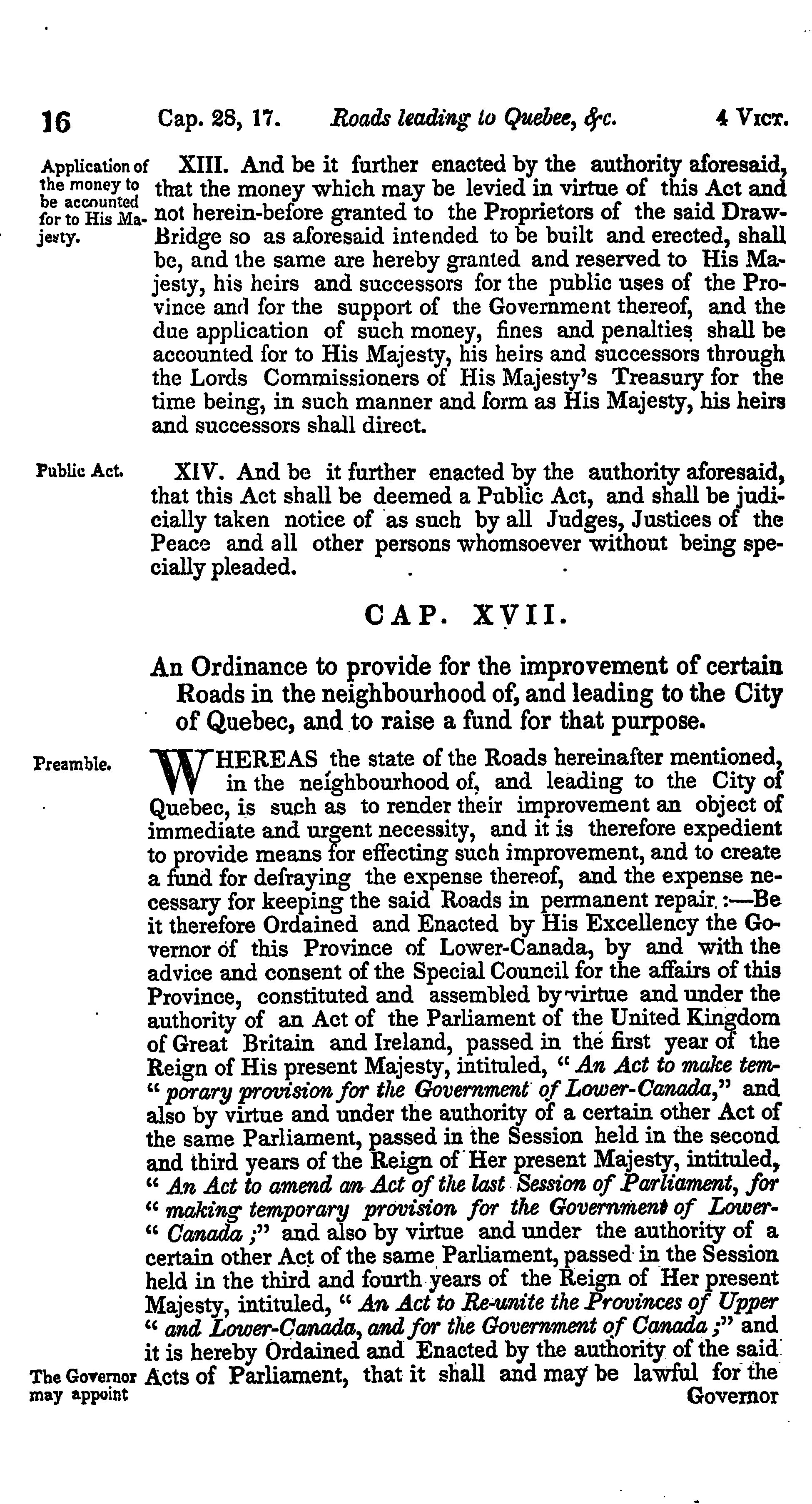 Acts relating to the turnpike roads and bridges in and near Quebec.