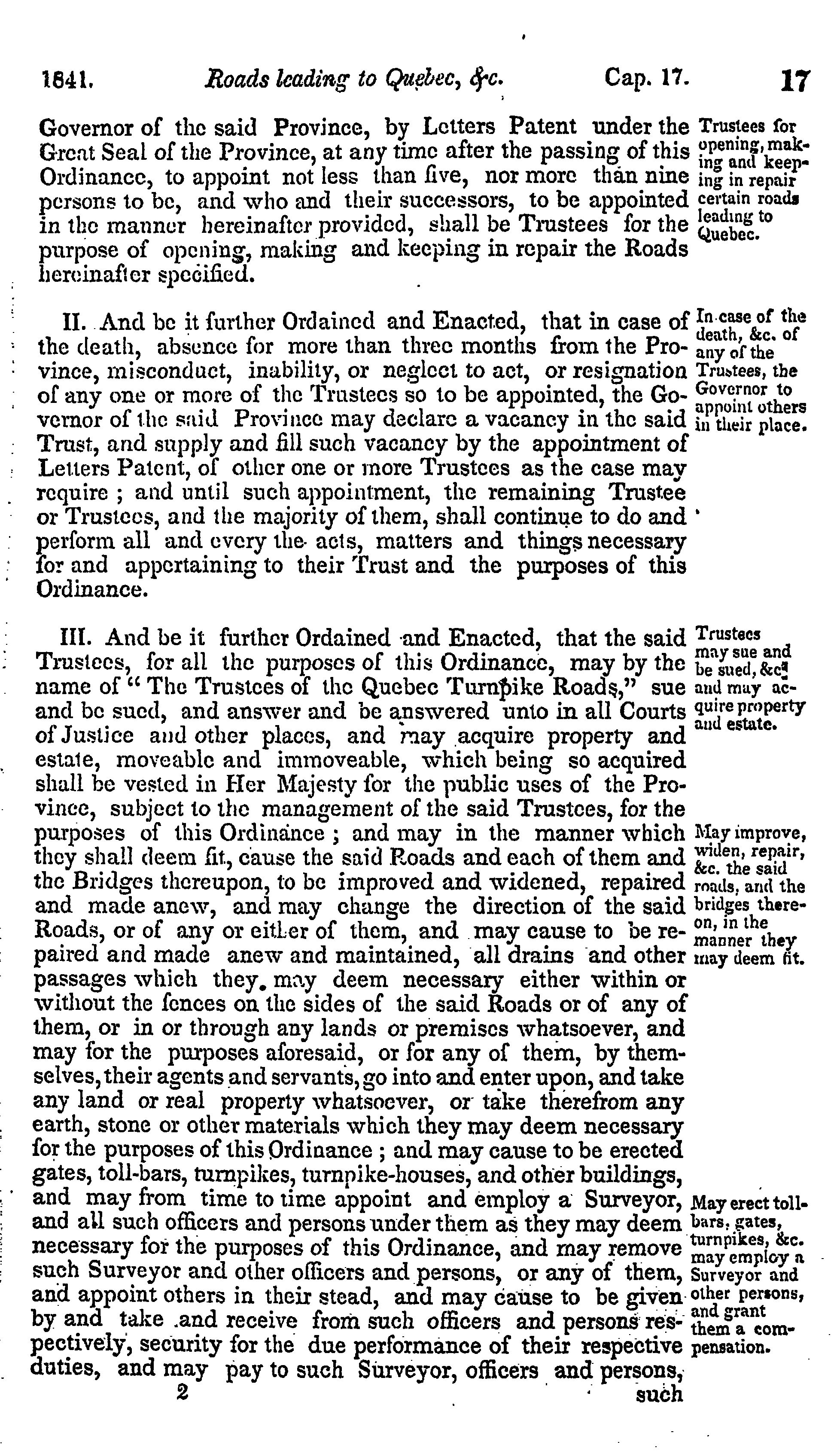 Acts relating to the turnpike roads and bridges in and near Quebec.
