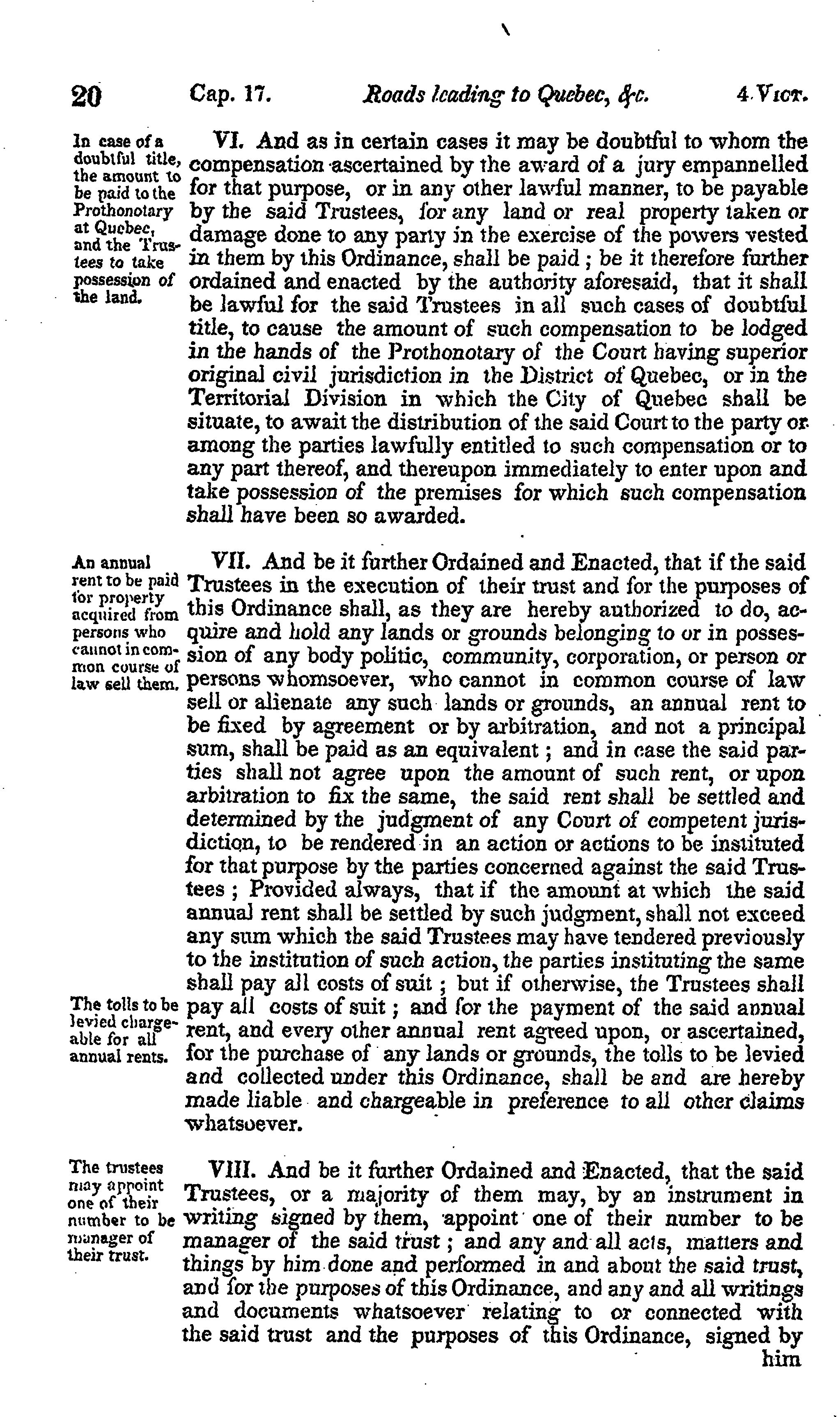 Acts relating to the turnpike roads and bridges in and near Quebec.