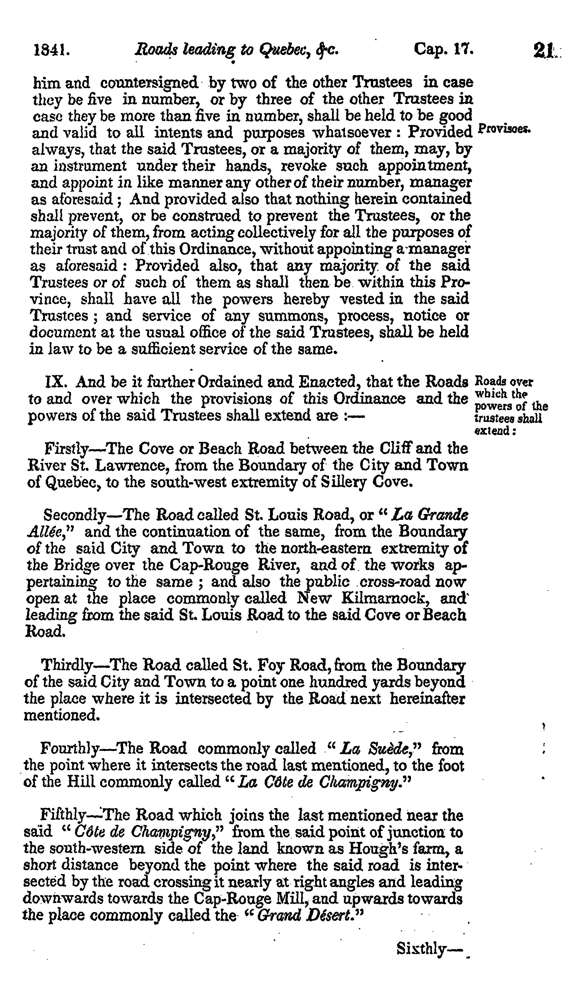 Acts relating to the turnpike roads and bridges in and near Quebec.