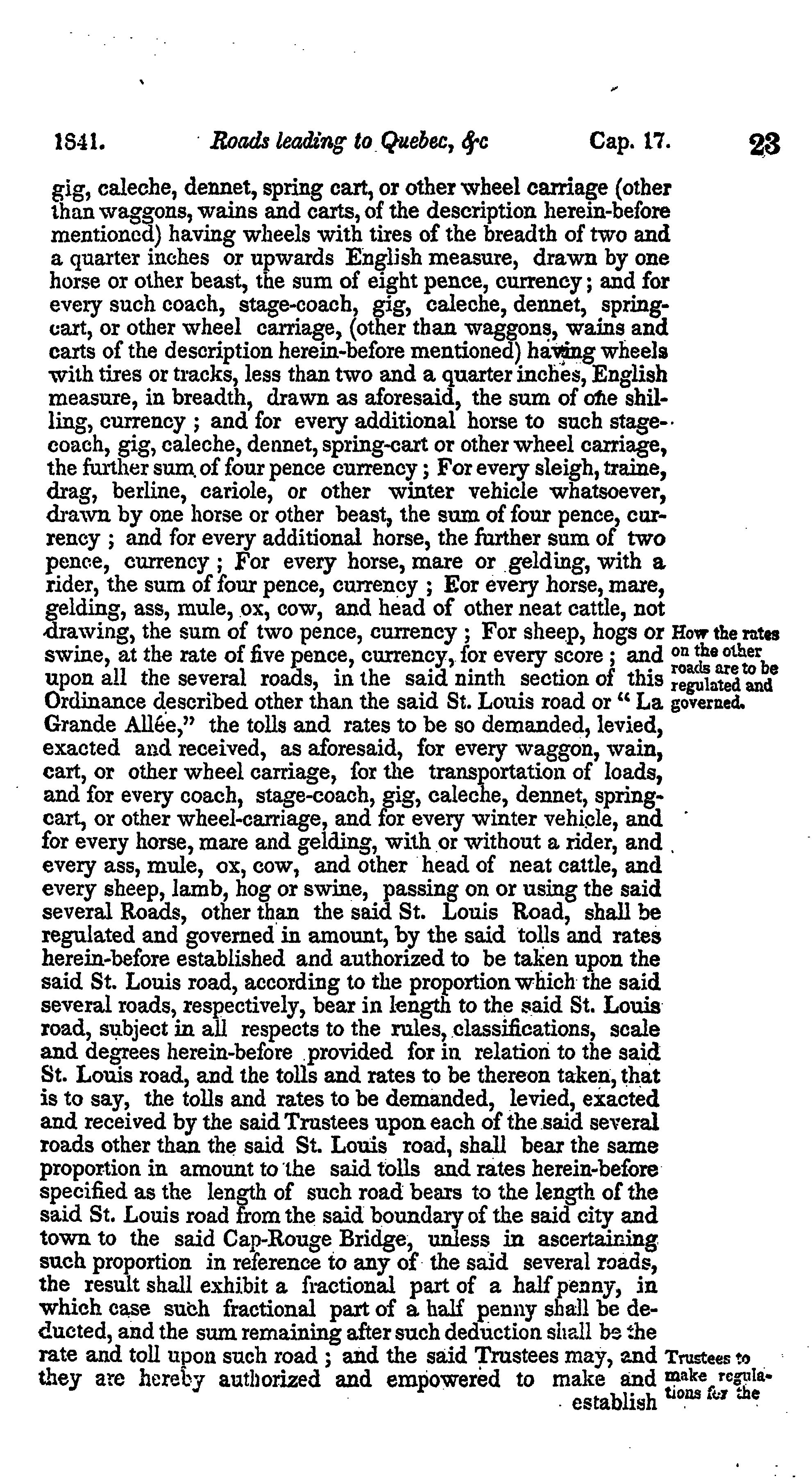 Acts relating to the turnpike roads and bridges in and near Quebec.