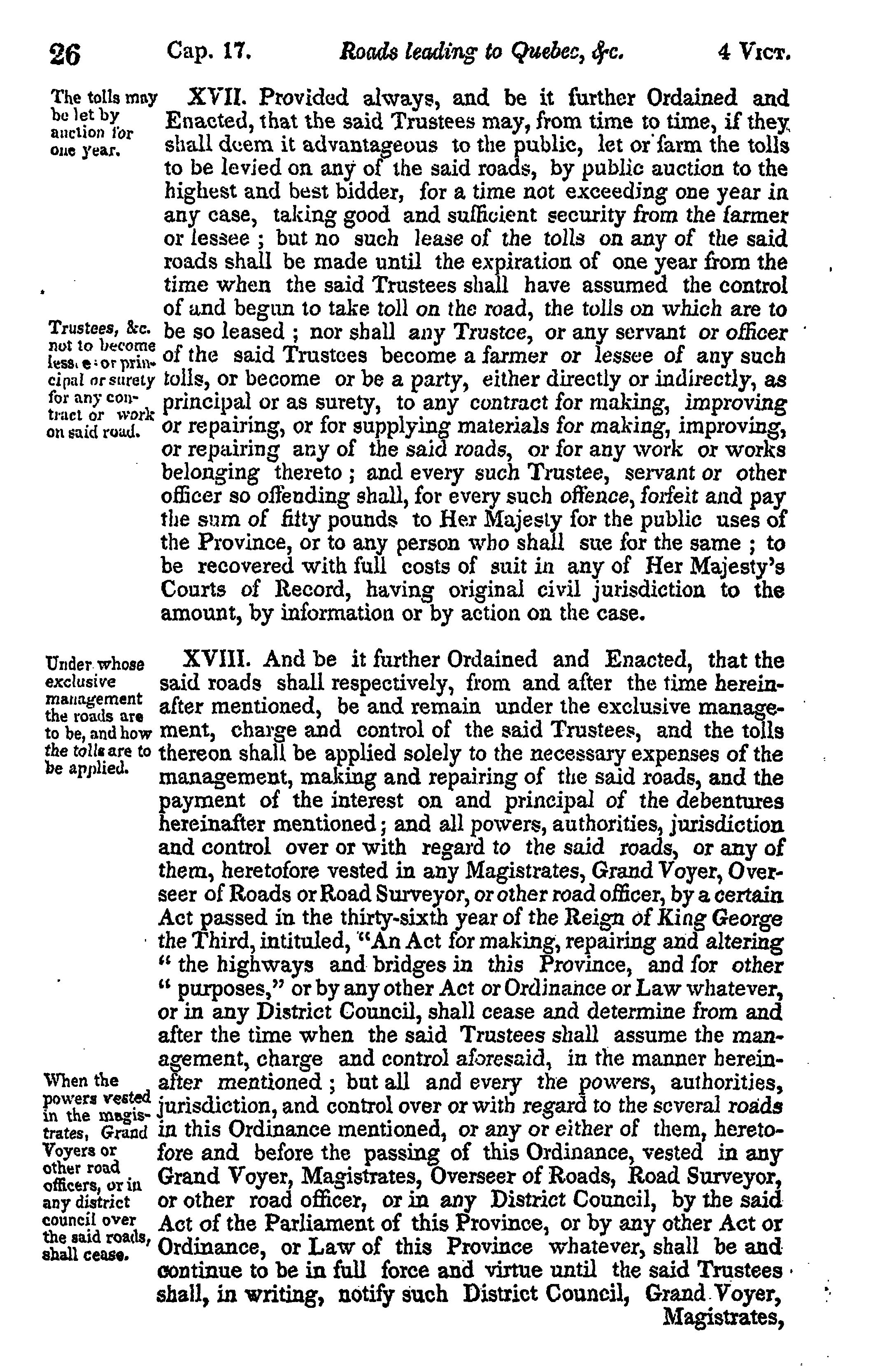 Acts relating to the turnpike roads and bridges in and near Quebec.