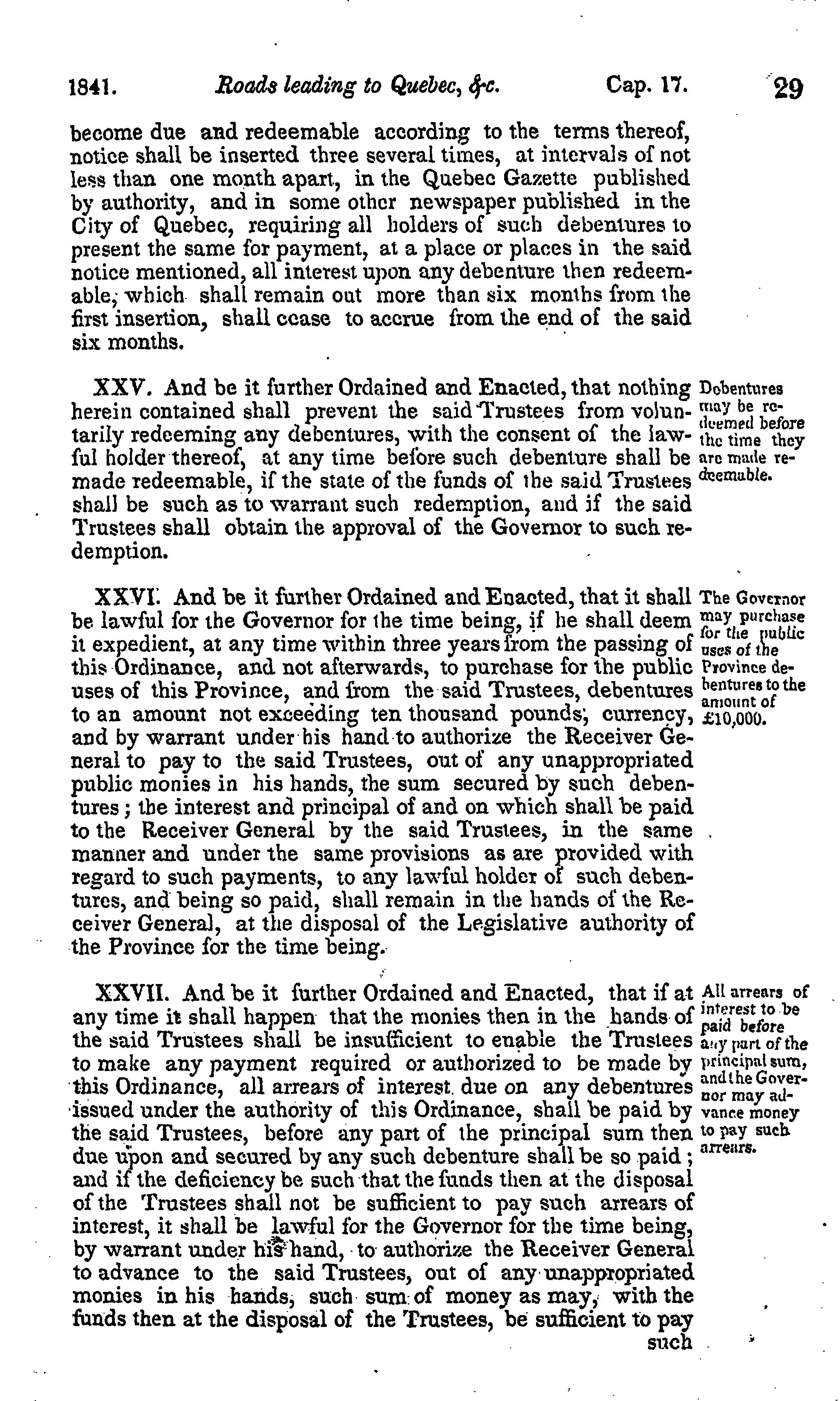 Acts relating to the turnpike roads and bridges in and near Quebec.