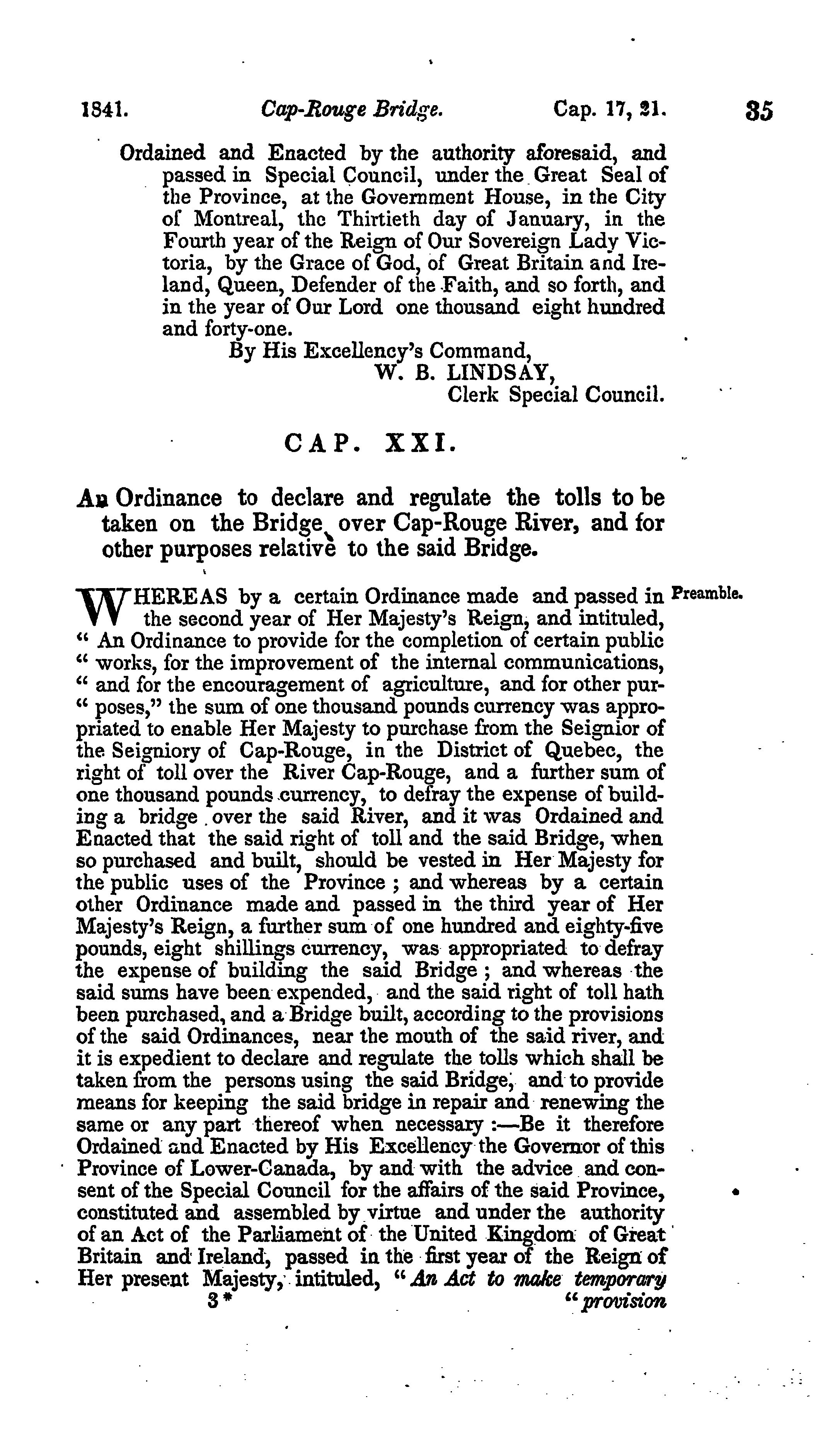 Acts relating to the turnpike roads and bridges in and near Quebec.