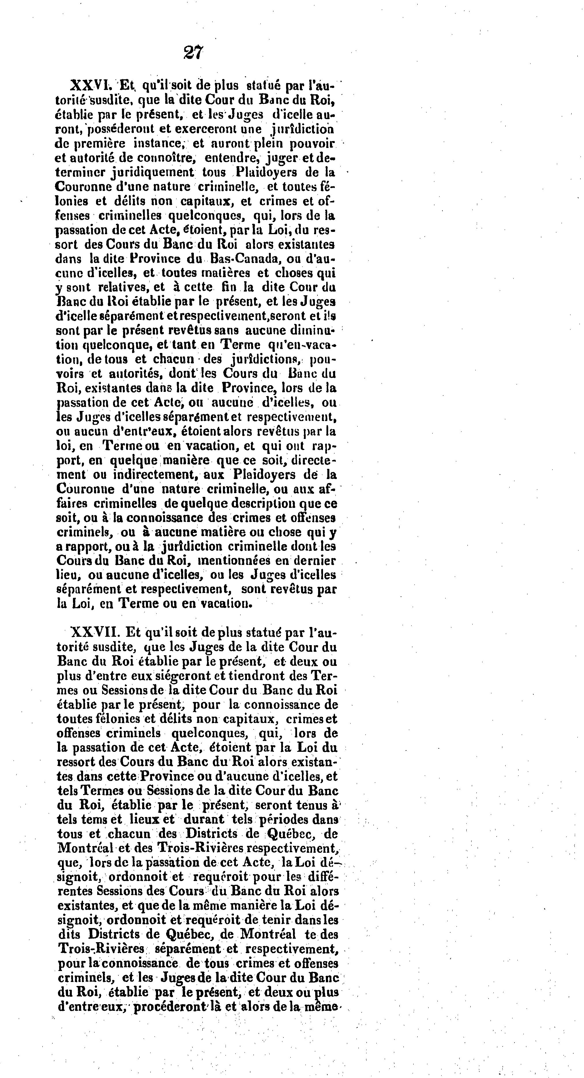 Bill an act to repeal and amend certain parts of an act passed in the thirty-fourth year of His late Majesty's Reign, intituled "An Act for the division of the Province of Lower-Canada, for amending the Judicature thereof, and for repealing certain laws therein mentioned, and to make further provision for the more certain and uniform administration of Justice within the said Province = Bill acte pour rappeller en partie, et amender certaines parties d'un acte passé dans la Trente-quatrième année du Règne de feu Sa Majesté, intitulé "Acte qui divise la Province du Bas-Canada, qui amende la Judicature d'icelle, et qui rappelle certaines Lois y mentionnées, et pour faire de plus amples provisions pour l'Administration, plus certaine et plus uniforme de la Justice dans la dite Province. - Adresse bibliographique