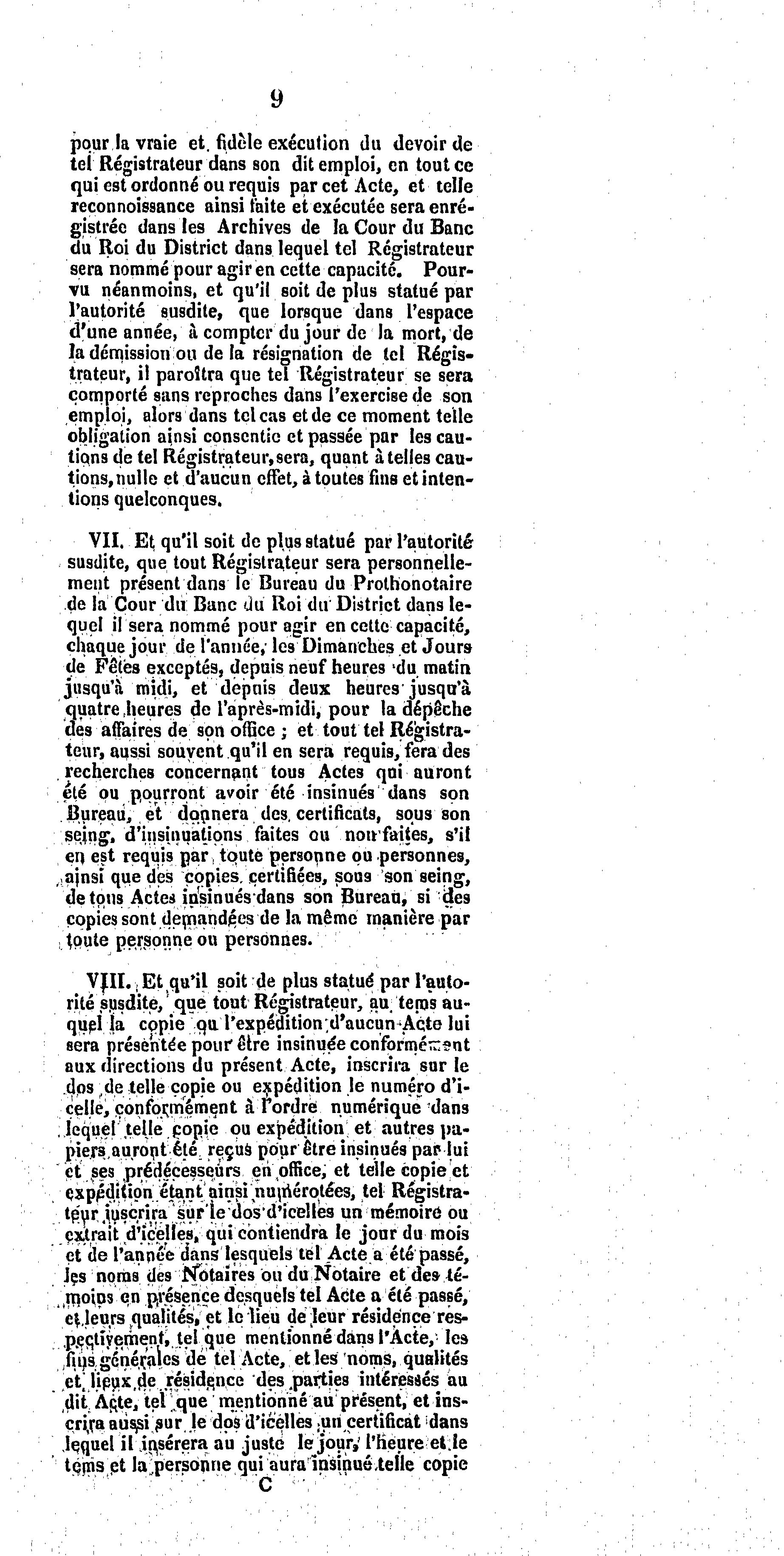 Bill introduit dans le Conseil législatif de la province du Bas- Canada " pour l'insinuation de tous actes et instruments qui grevent d'hypotheque des biens immeubles"
