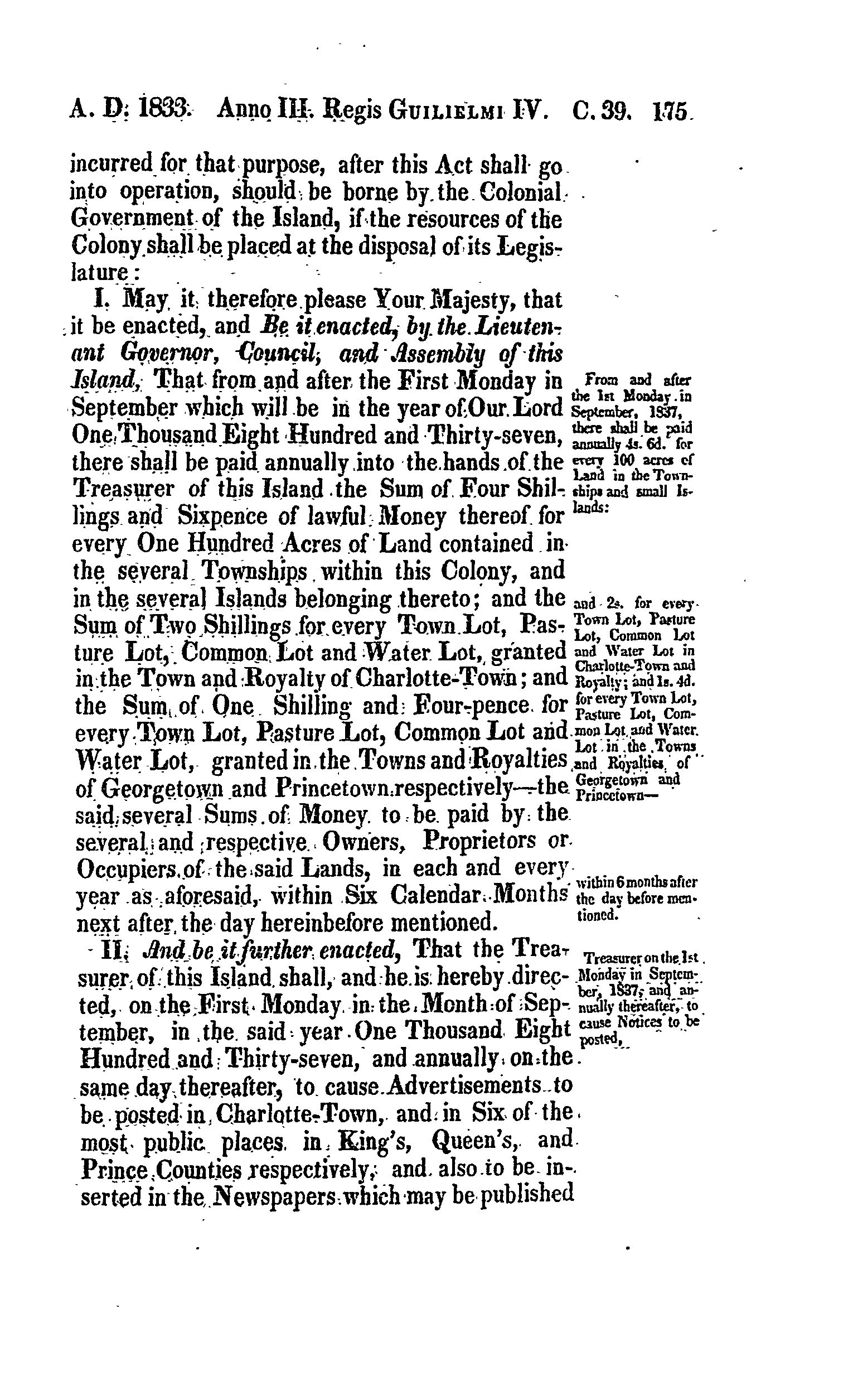 - Acts of the General Assembly of Prince Edward Island, passed in the year 1833 : 1833