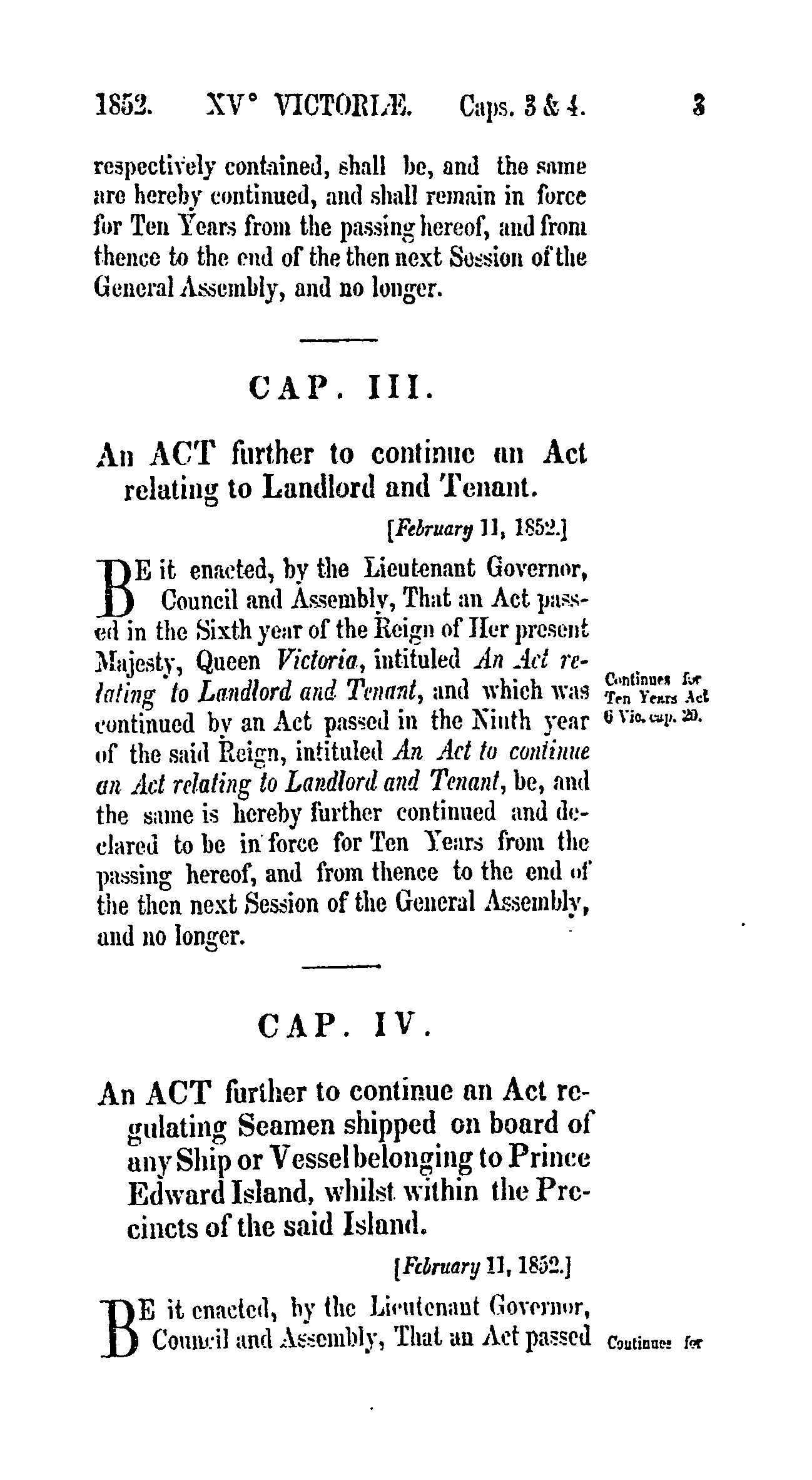 The acts of the General Assembly of Prince Edward Island, anno decimo quinto Victoriæ reginæ [1852] : 1852