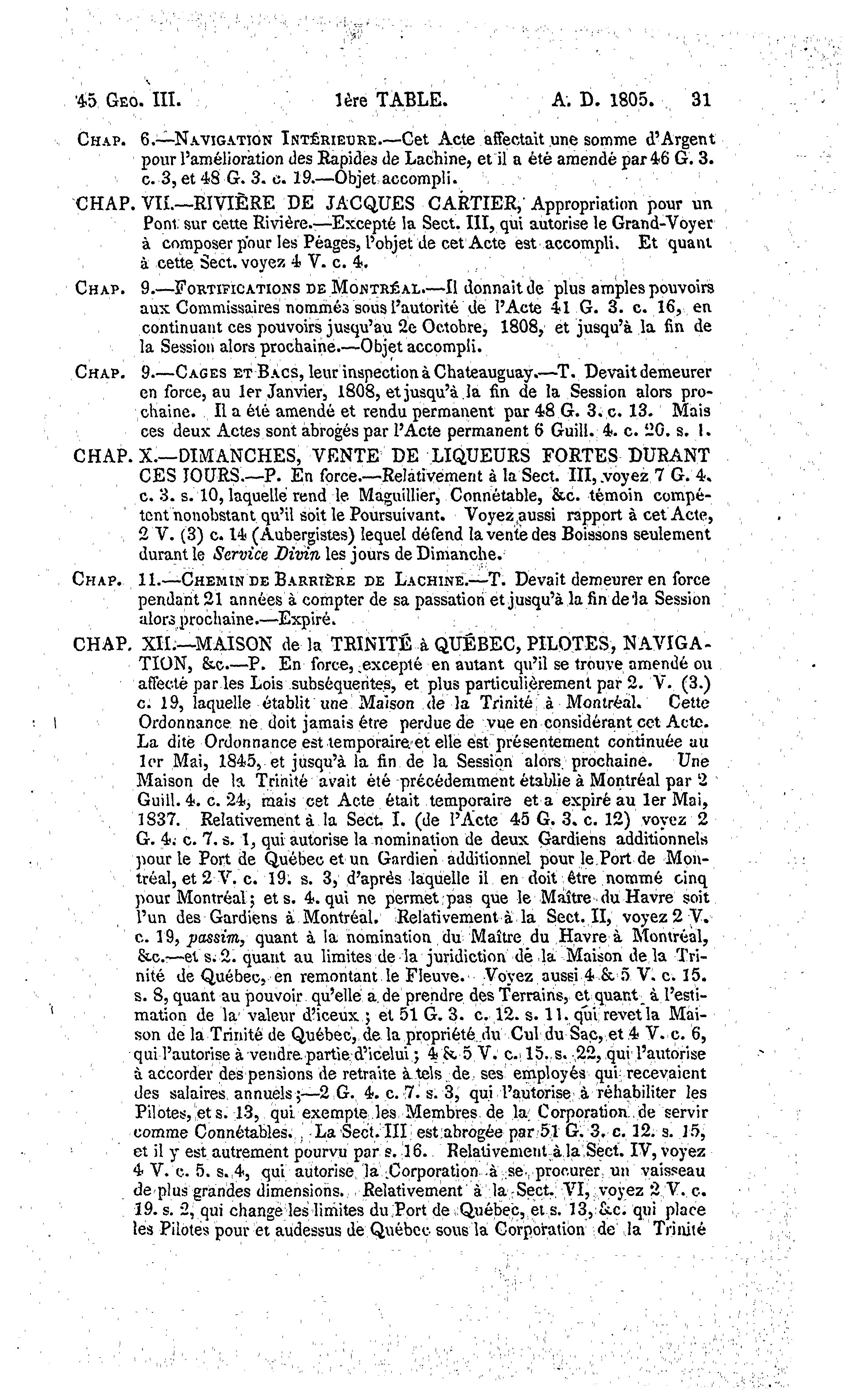 Tables relatives aux actes et ordonnances du Bas-Canada.