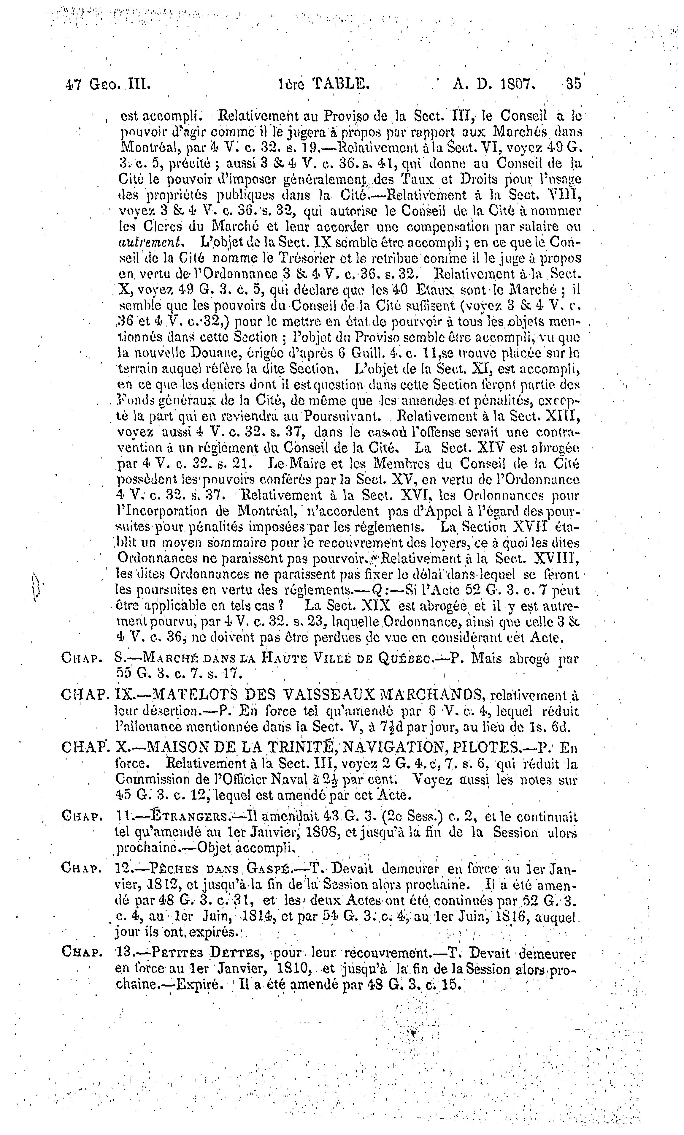 Tables relatives aux actes et ordonnances du Bas-Canada.