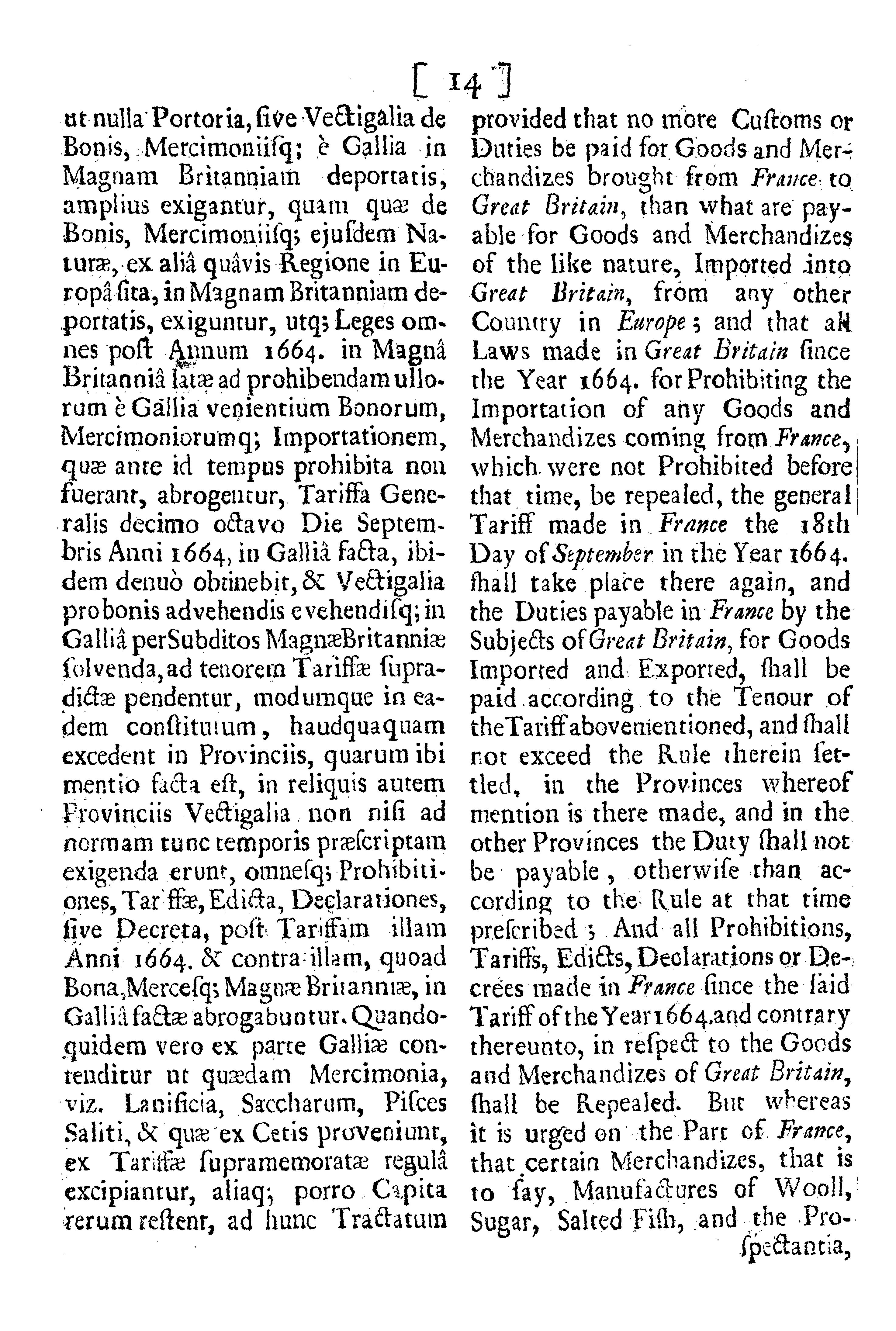 Tractatus navigationis et commerciorum : inter Serenissimam ac Potentissimam Principem Annam, Dei Gratia, Magnæ Britanniæ, Franciæ, & Hibernæ, Reginam, & Serenissimum ac Potentissimum Principem Ludovicum XIV, Dei Gratia, Regem Christianissimum, conclusus trajecti ad Rhenum die 31 Martii/11 Aprils anno 1713 = Treaty of navigation and commerce : between the Most Serene and Most Potent Princess Anne, by the Grace of God, Queen of Great Britain, France, and Ireland, and the Most Potent Prince Lewis the XIVth, the Most Christian king, concluded at Utrecht the 31/11 day of March/April 1713.