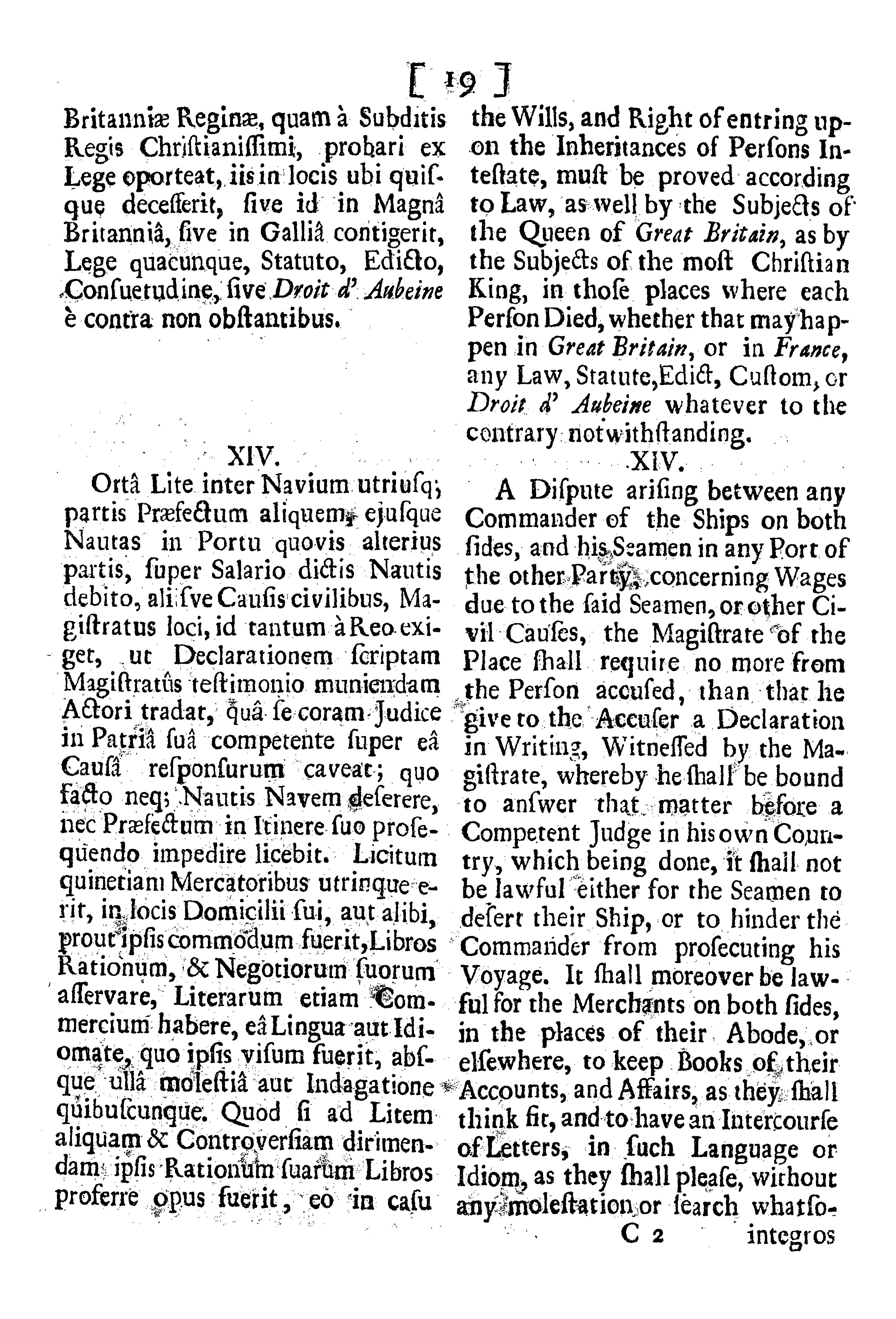 Tractatus navigationis et commerciorum : inter Serenissimam ac Potentissimam Principem Annam, Dei Gratia, Magnæ Britanniæ, Franciæ, & Hibernæ, Reginam, & Serenissimum ac Potentissimum Principem Ludovicum XIV, Dei Gratia, Regem Christianissimum, conclusus trajecti ad Rhenum die 31 Martii/11 Aprils anno 1713 = Treaty of navigation and commerce : between the Most Serene and Most Potent Princess Anne, by the Grace of God, Queen of Great Britain, France, and Ireland, and the Most Potent Prince Lewis the XIVth, the Most Christian king, concluded at Utrecht the 31/11 day of March/April 1713.