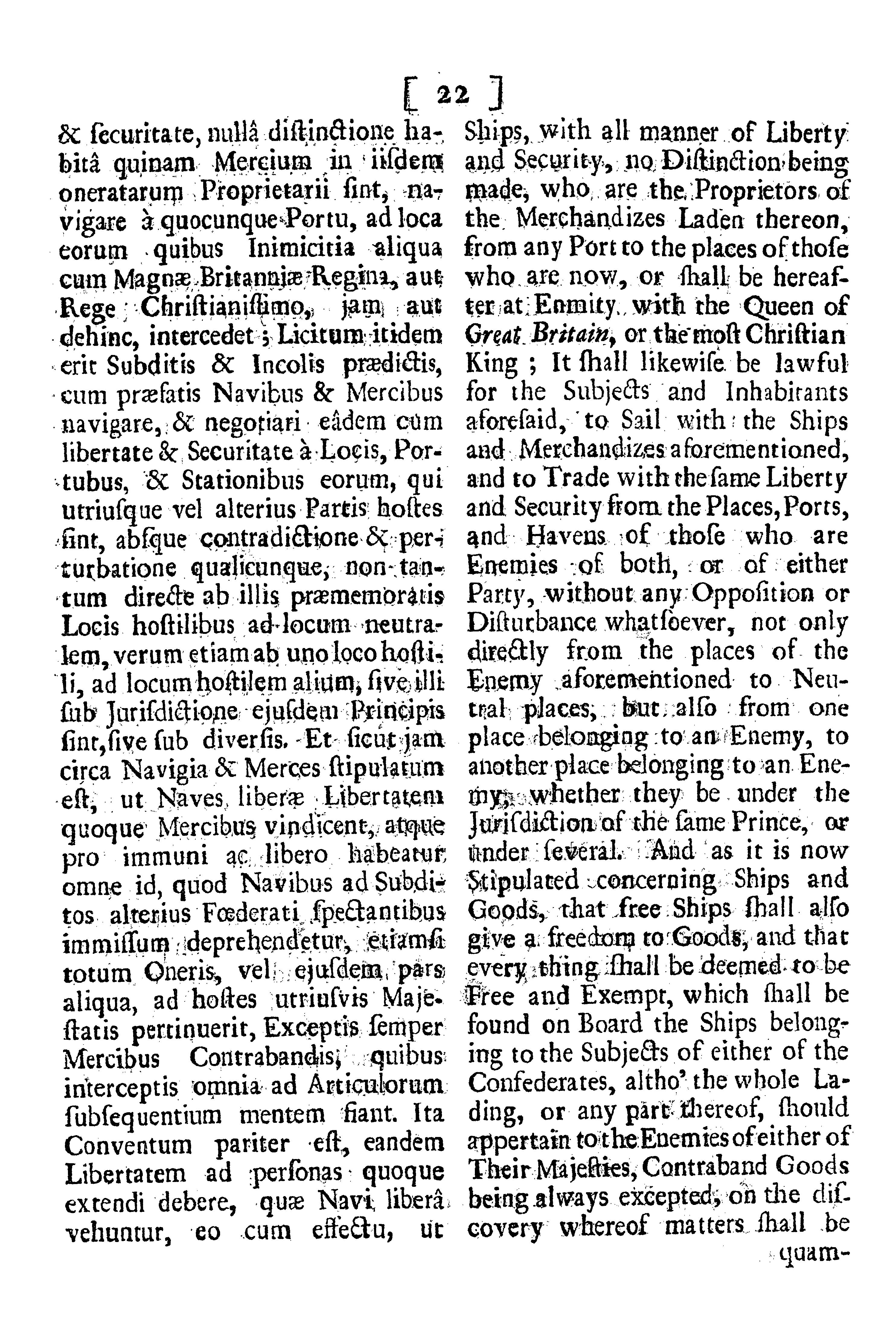 Tractatus navigationis et commerciorum : inter Serenissimam ac Potentissimam Principem Annam, Dei Gratia, Magnæ Britanniæ, Franciæ, & Hibernæ, Reginam, & Serenissimum ac Potentissimum Principem Ludovicum XIV, Dei Gratia, Regem Christianissimum, conclusus trajecti ad Rhenum die 31 Martii/11 Aprils anno 1713 = Treaty of navigation and commerce : between the Most Serene and Most Potent Princess Anne, by the Grace of God, Queen of Great Britain, France, and Ireland, and the Most Potent Prince Lewis the XIVth, the Most Christian king, concluded at Utrecht the 31/11 day of March/April 1713. - Adresse bibliographique